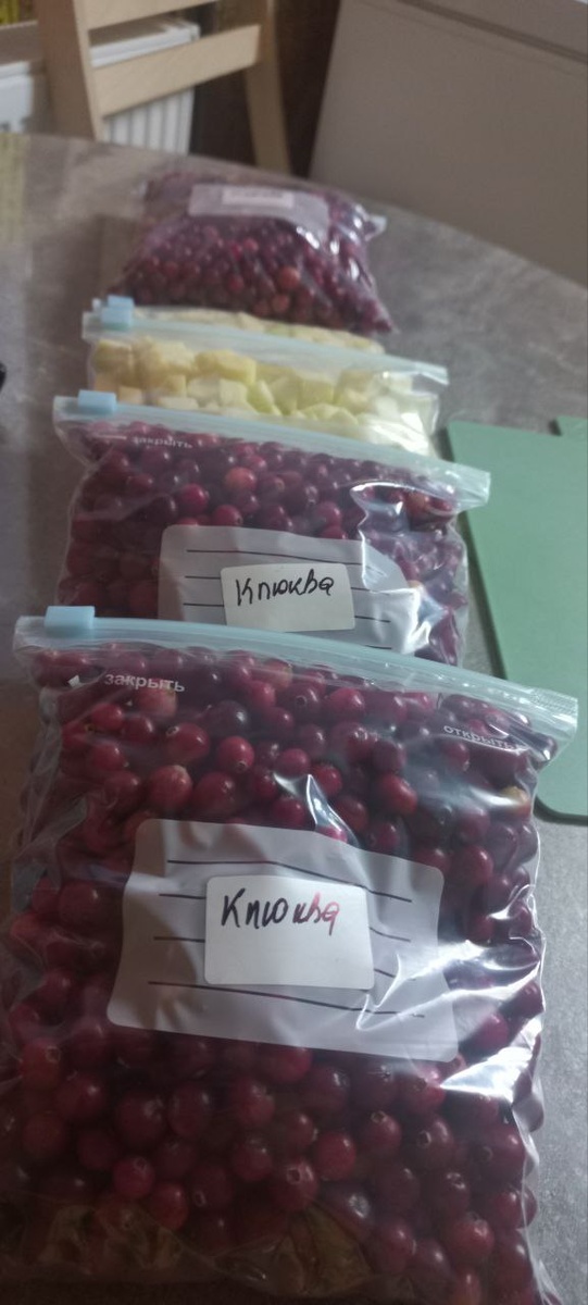 В этом году клюква была тщательно собрана и порционно упакована, чтобы сохранить всю её пользу на холодный период. Кабачки, нарезанные на удобные порции, также нашли своё место в морозильнике. Это позволит в любое время быстро приготовить полезное блюдо, добавив их в супы, запеканки или салаты.