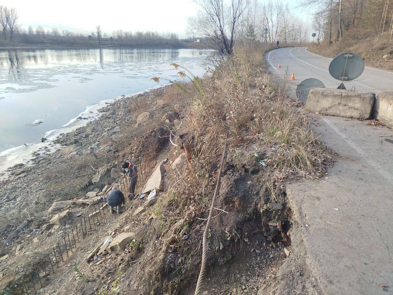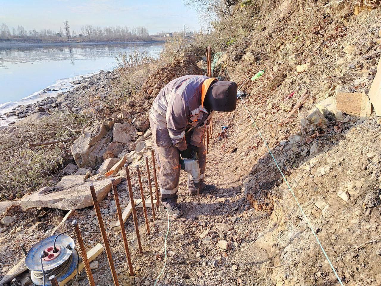 Работы ведутся ежедневно, включая выходные, чтобы завершить их в срок. На объект завезены все необходимые материалы. Сейчас специалисты обустраивают армированный каркас: в скальный грунт на метровую глубину устанавливается арматура для бетонирования подпорной стены. Эта конструкция позволит предотвратить размыв дороги в будущем.