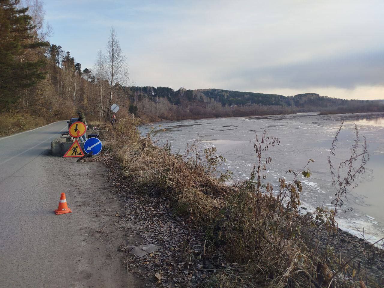 На дороге Абашево – Дом Рыбака укрепляют берег и обновляют полотно