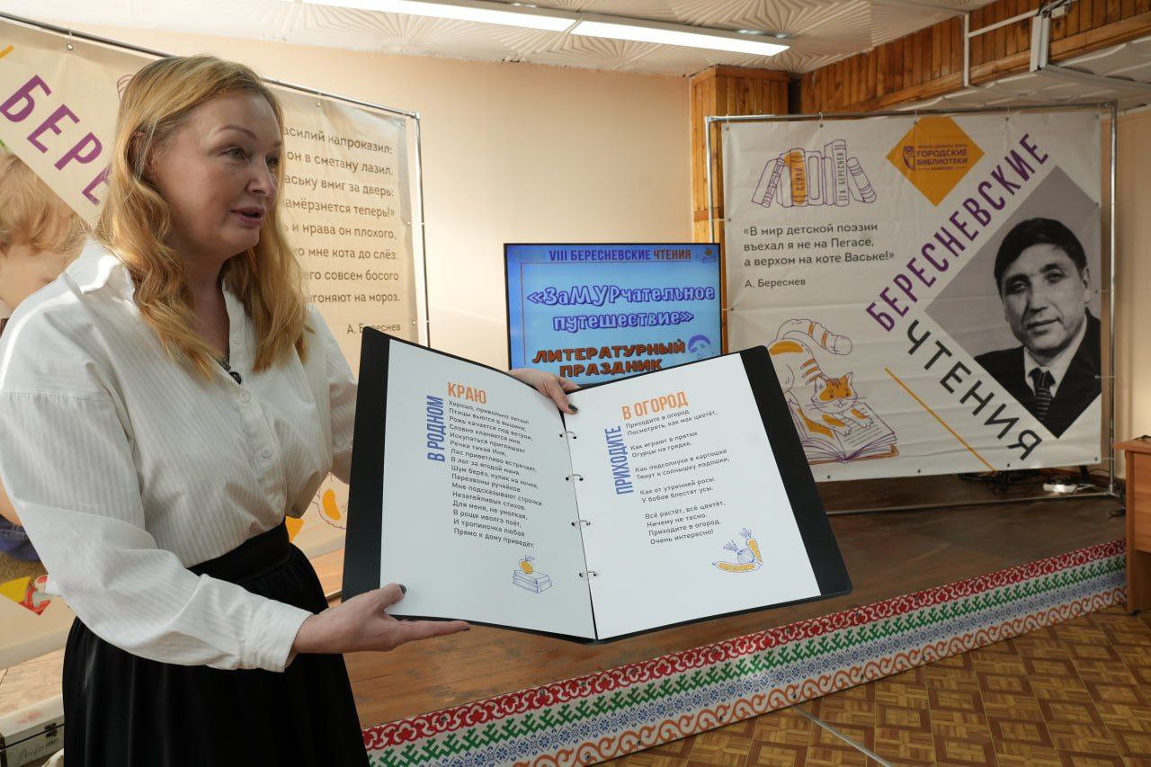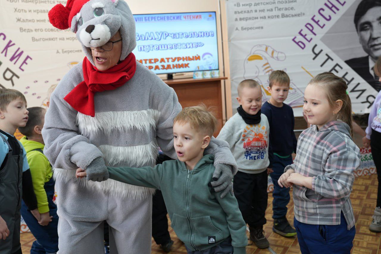 Праздник продолжился целый день. Первыми его гостями стали дошколята, их в игровой форме познакомили со стихотворениями сибирского поэта, интересными фактами его биографии. Учащимся начальных классов Татьяна Болотова презентовала свою книгу стихов, причем в необычной форме: вместе с мужем Александром подготовили небольшой концерт. А рисунками к книге «Странная сказка» стали детские работы. Ребят постарше пригласили на литературный квест «Коты ведут расследование». Также сегодня дали старт конкурсу детских рисунков – иллюстраций к стихам А.М. Береснева. Итоги подведут 29 января 2026 года, в день 80-летия со дня рождения поэта.