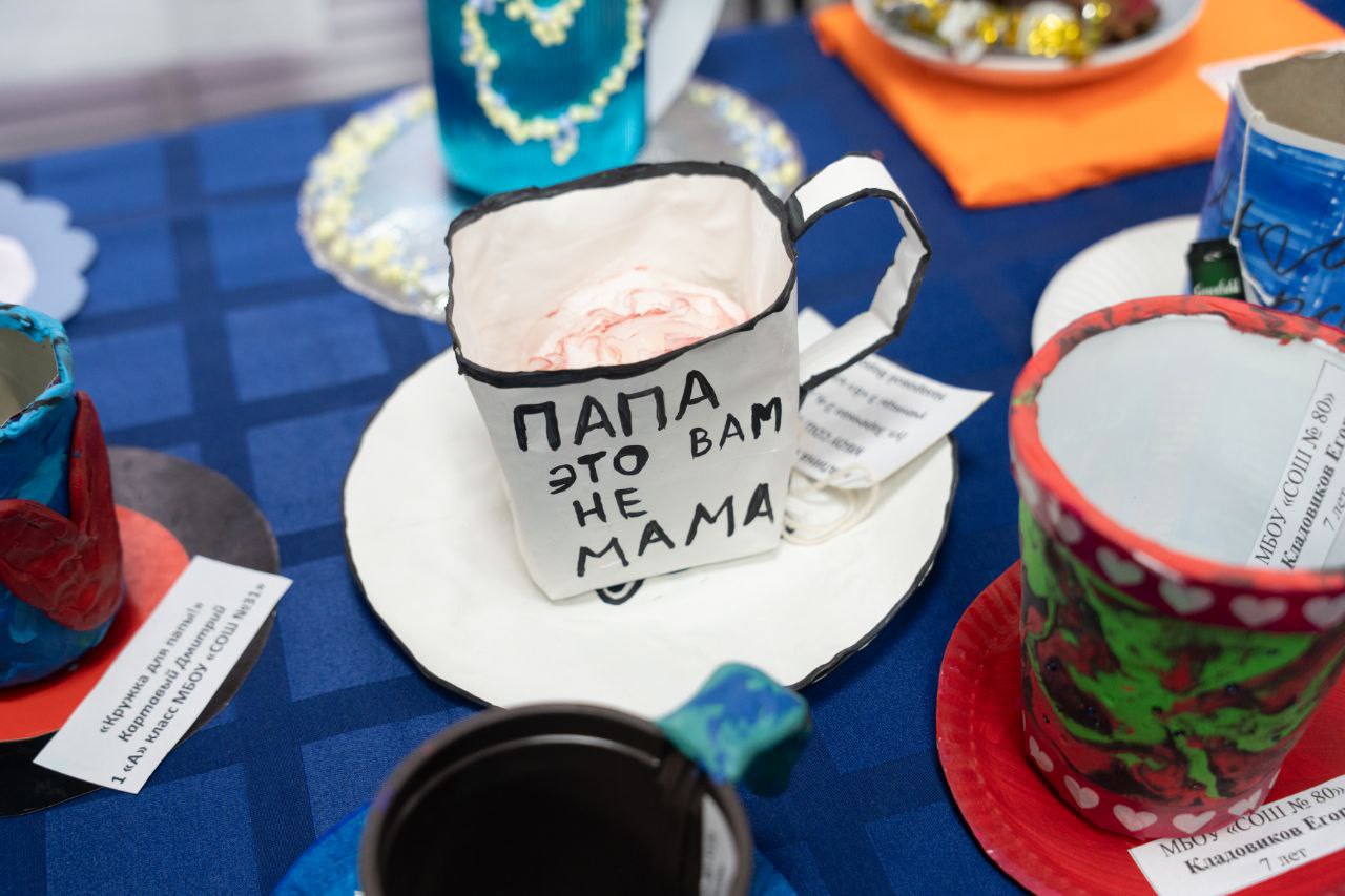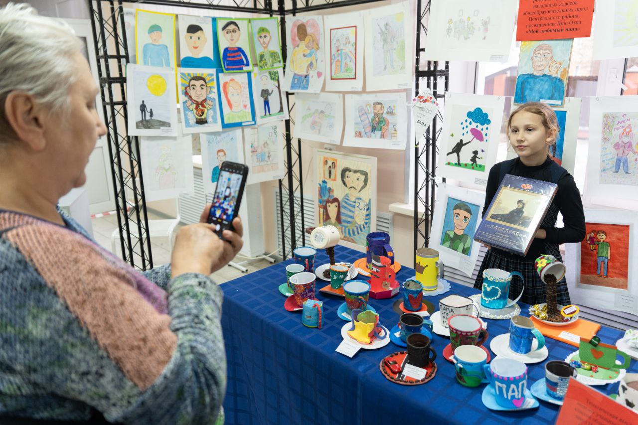 В территориальном управлении Центрального района сегодня открылась тематическая выставка рисунков «Мой любимый папа» и детских поделок «Папина кружка».