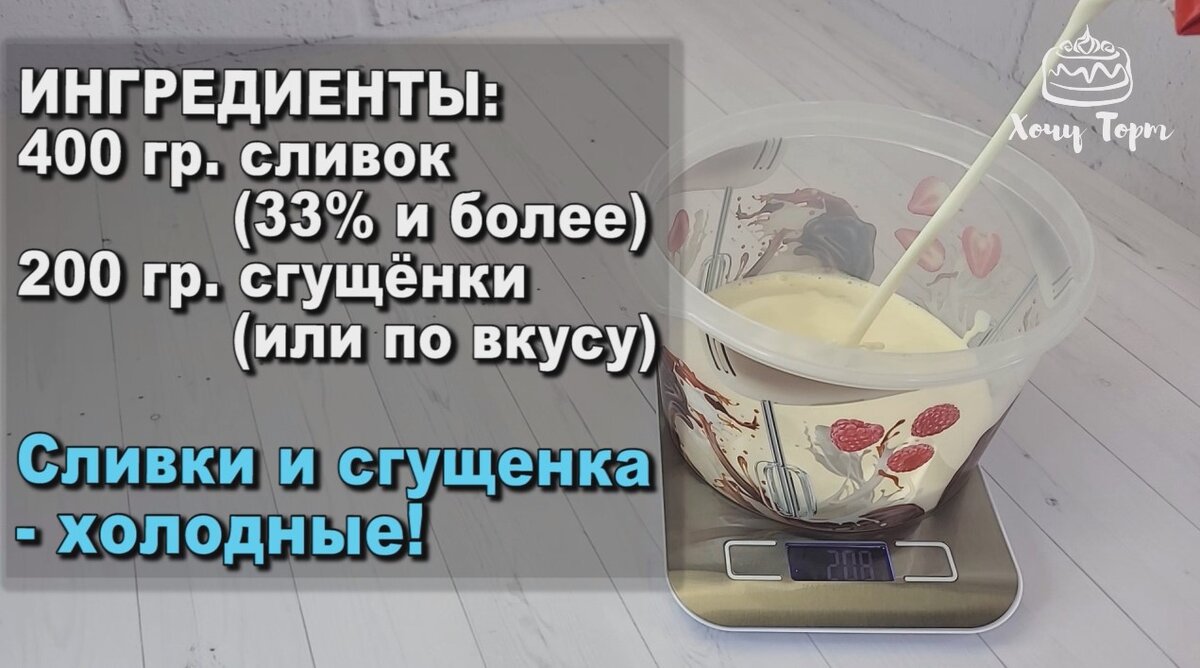 1. Прежде всего, сливки лучше всего охладить. Оставьте их в холодильнике на ночь, чтобы они хорошо взбились. При взбивании они могут отсечься, если температура будет недостаточной.