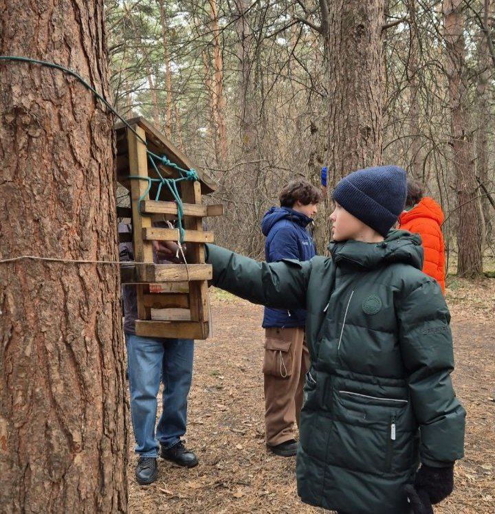 На территории, где ранее состоялись субботники по очистке леса от зарослей инвазивного американского клена, ребята проверили кормушки для птиц, их исправность и готовность к зиме.