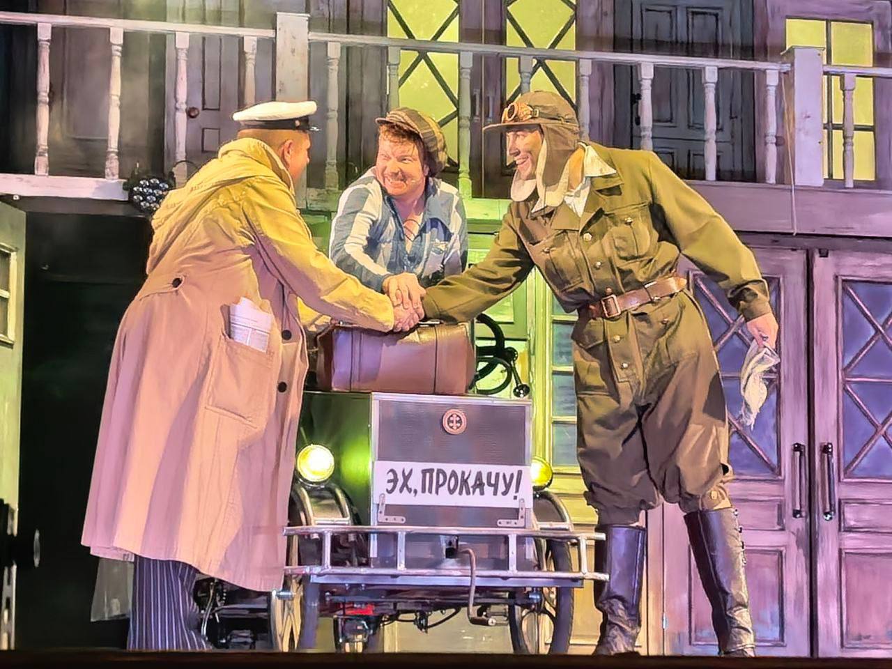 Для семей участников СВО филиал фонда «Защитники Отечества» организовал поход в Театр драмы Кузбасса на спектакль «Золотой теленок». После показа для мам и жен ветеранов устроили чаепитие для обсуждения постановки.
