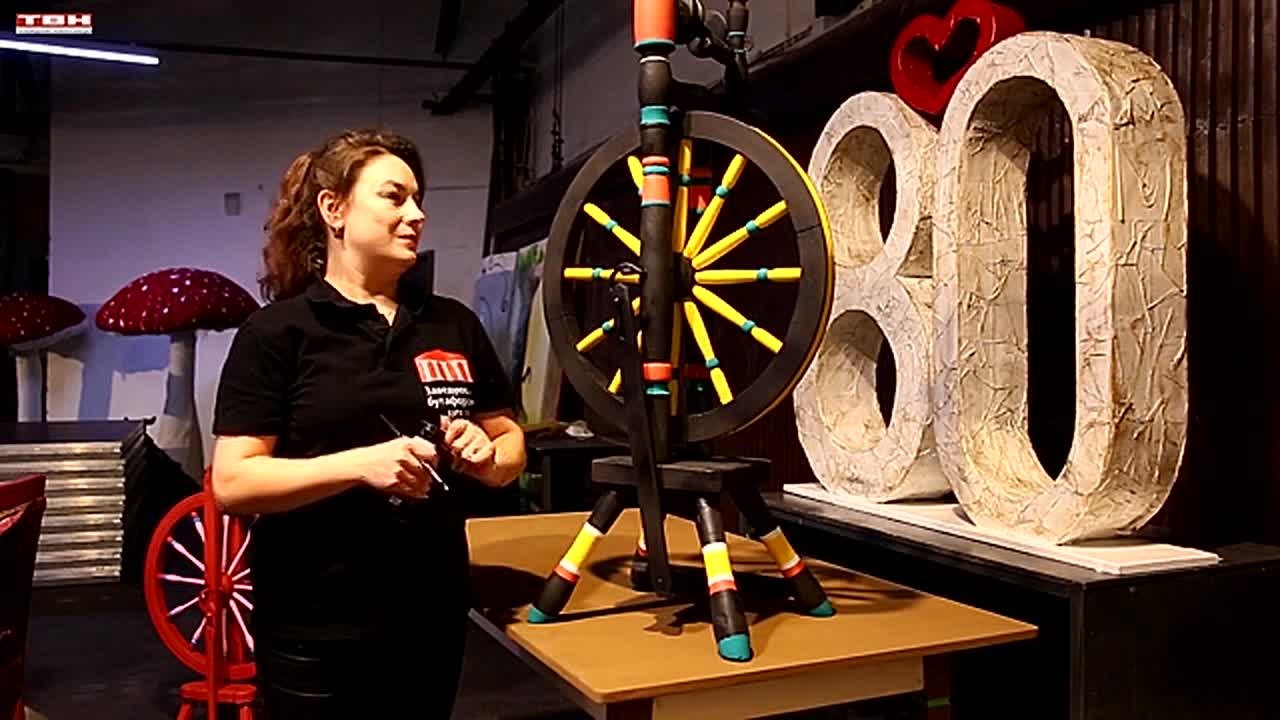 Ксения ОРЛОВА, заведующая декоративно-бутафорским цехом Прокопьевского драматического театра: «Сейчас мы занимаемся непосредственно, расписываем прялки. Это задумка художника Михаила Кукушкина. То есть прялки будут вот такие цветные, красивые. Но это еще не полная композиция. Она будет дополнена осенней листвой, кустом. Еще мы занимались паркетом, росписью паркета. Он у нас уже завершен, уже в репетиции находится, то есть в работе».