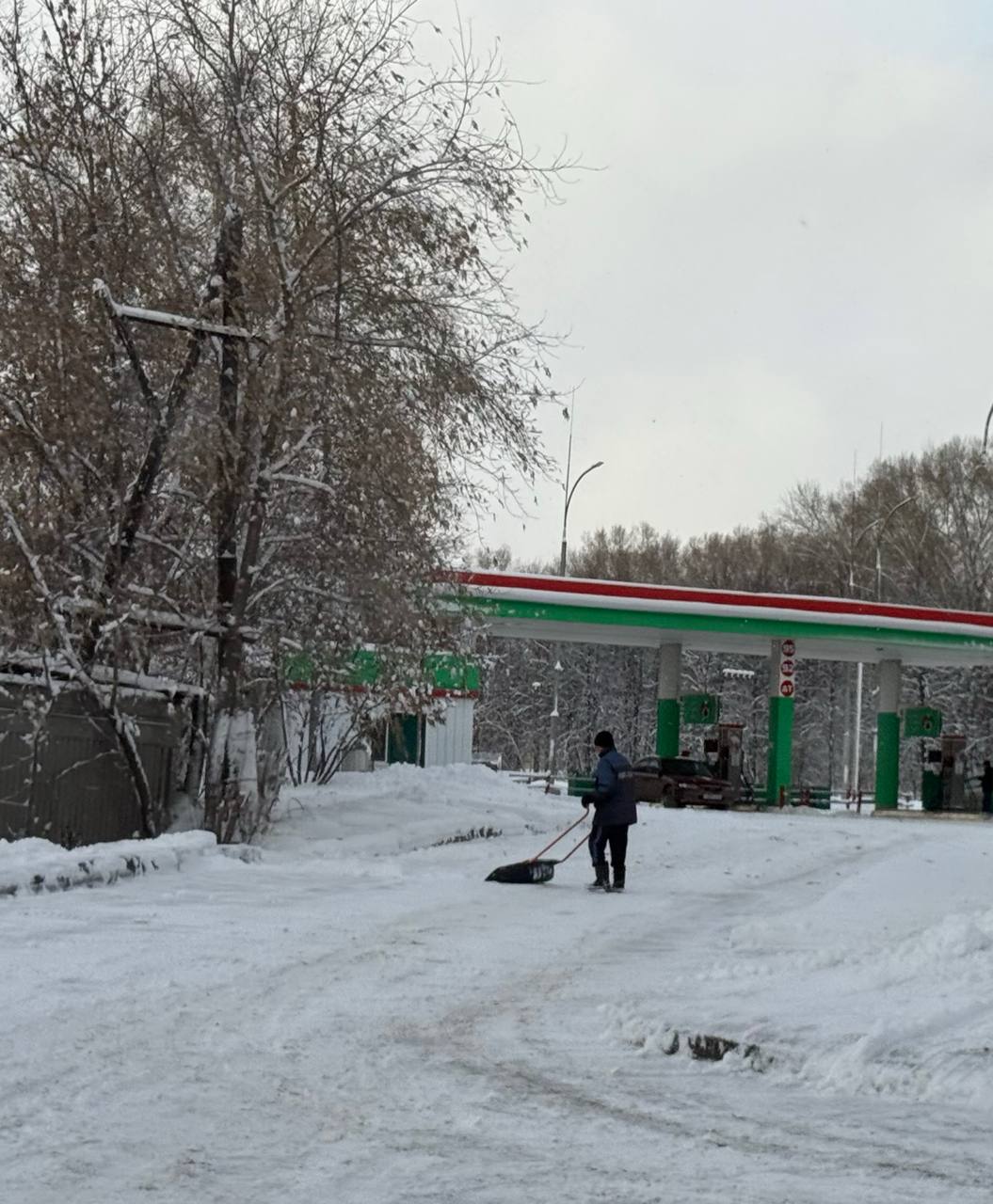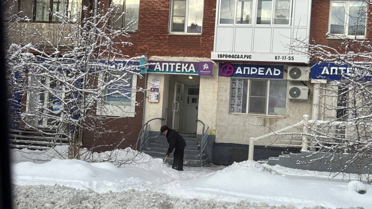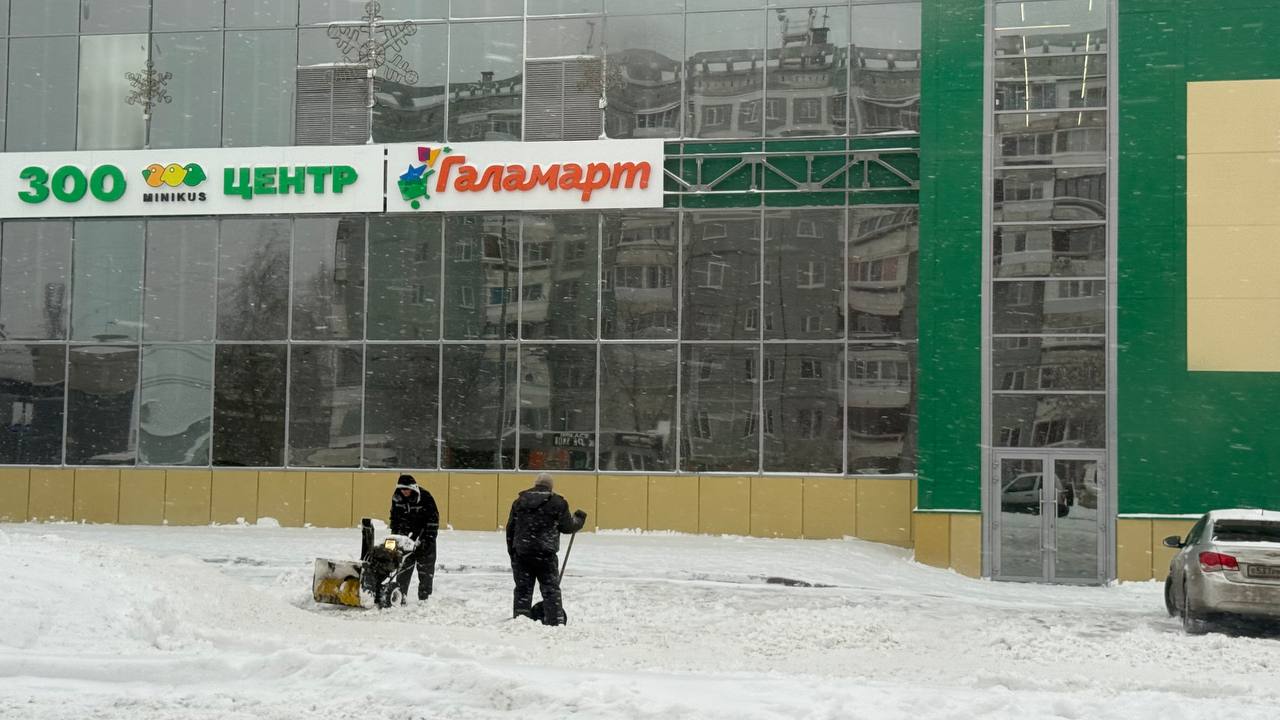 Сотрудники объектов потребительского рынка убирают снег на закрепленной за ними территории