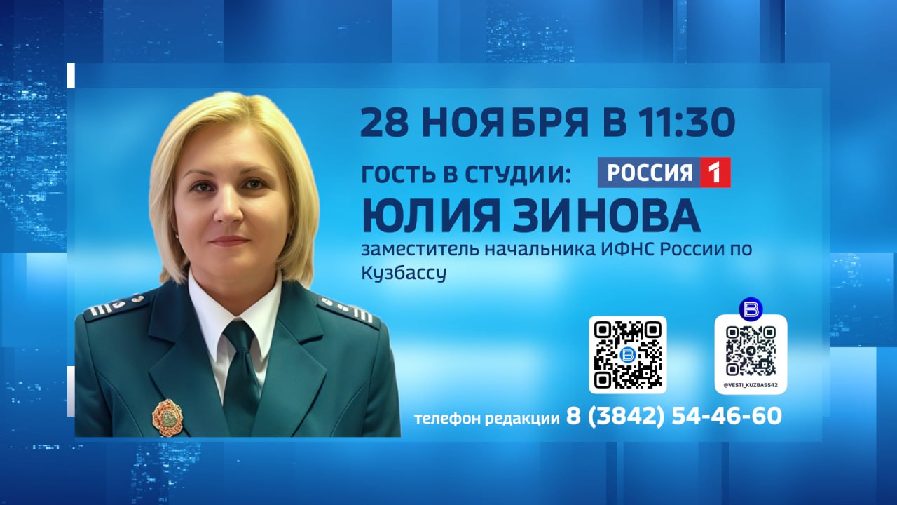 На Ваши вопросы в прямом эфире «Вести-Кузбасс» ответит Юлия Зинова, заместитель начальника ИФНС России по Кузбассу.