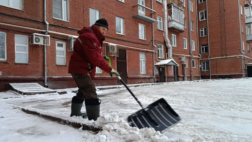 Сегодня убирают снег 1177 дворников, дополнительно привлечено 144 дворника - расчищают входные группы, пешеходные дорожки и тротуары.