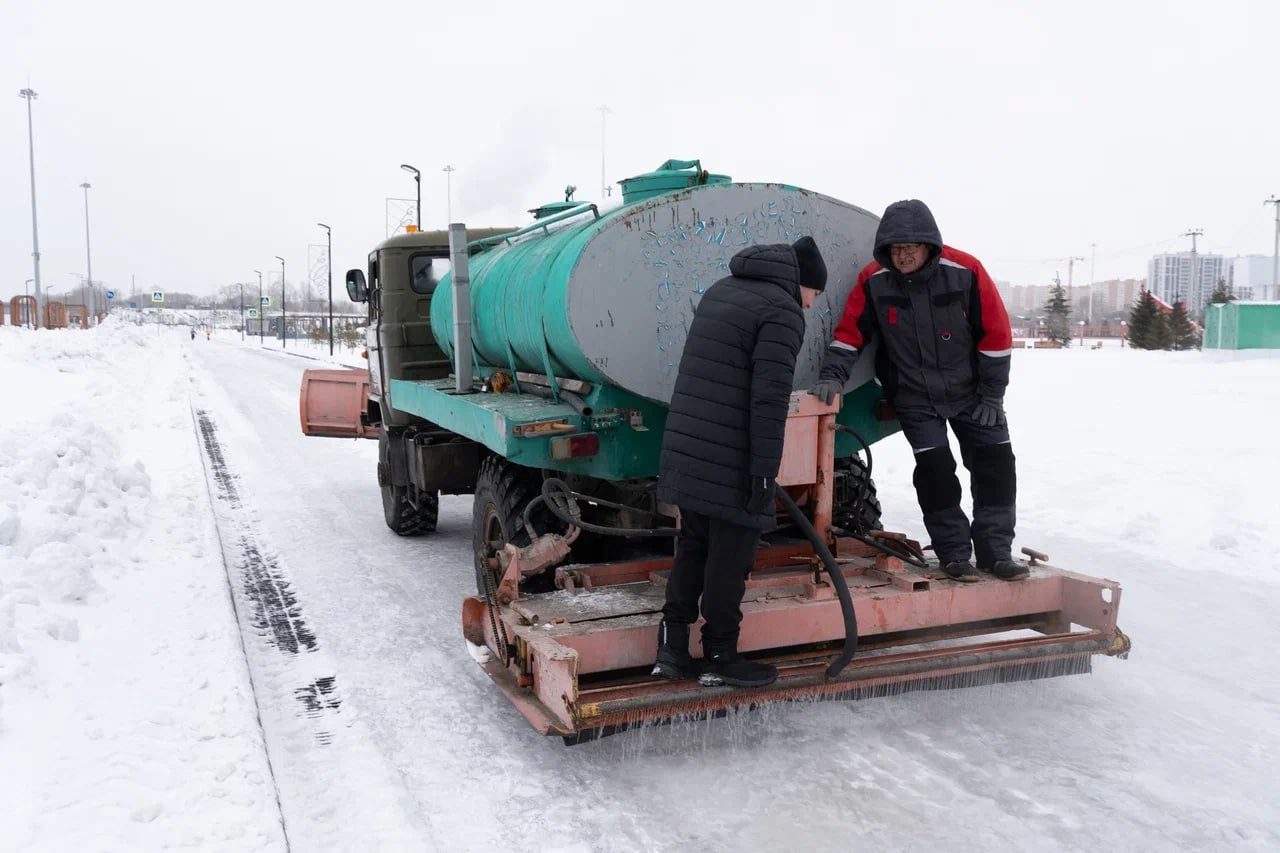 Специалисты стадиона «Химик» приступили к заливке двух самых популярных катков.