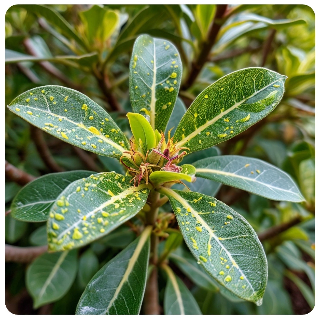 - Белокрылка (Aleyrodidae): Мелкие белые насекомые, летающие вокруг растения, которые откладывают яйца на нижней стороне листьев, привнося беспокойство в жизнь адениума.