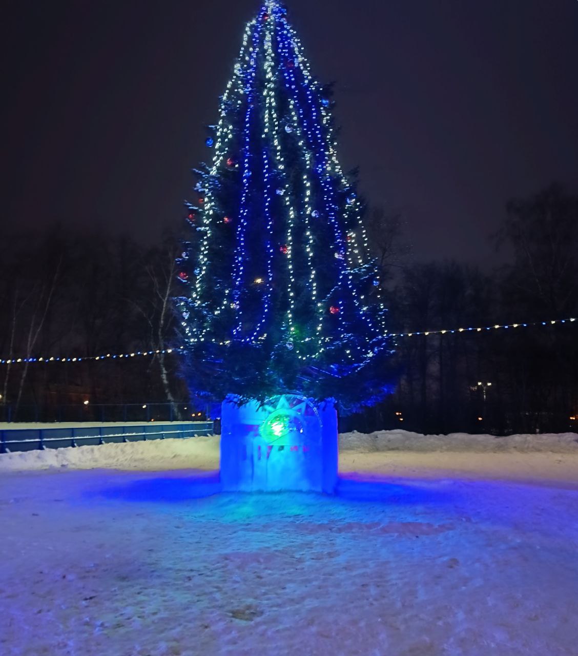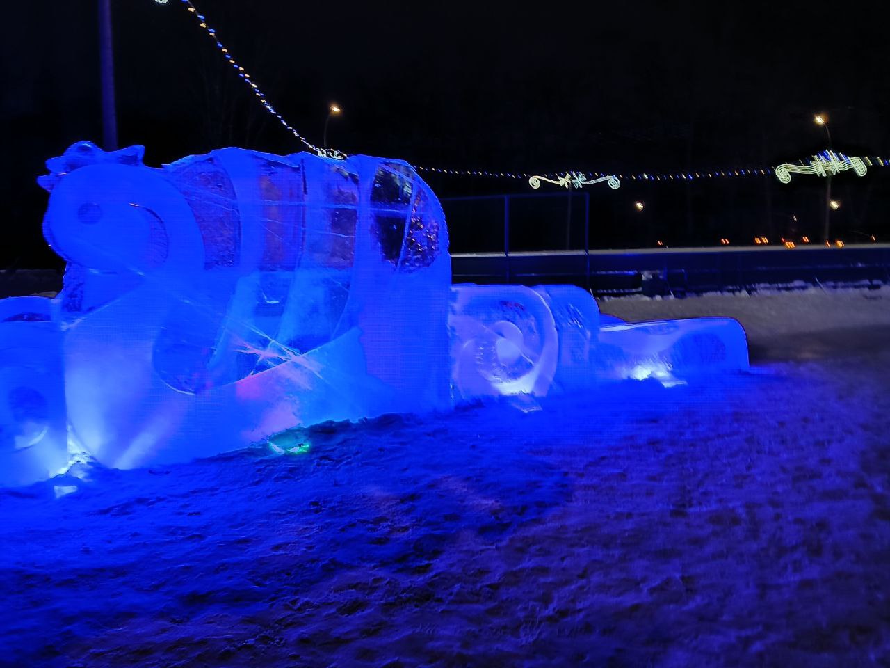 В этом году основной темой оформления городка стала "Русь православная". В центре на ледяном ограждении ели размещены резные изображения града православного с храмом и куполами, русскими узорами. На большой горке вырезаны фигуры коня и подковы, а маленькая сделана в форме хрустального лебедя. Сказочную атмосферу придаёт яркая иллюминация.