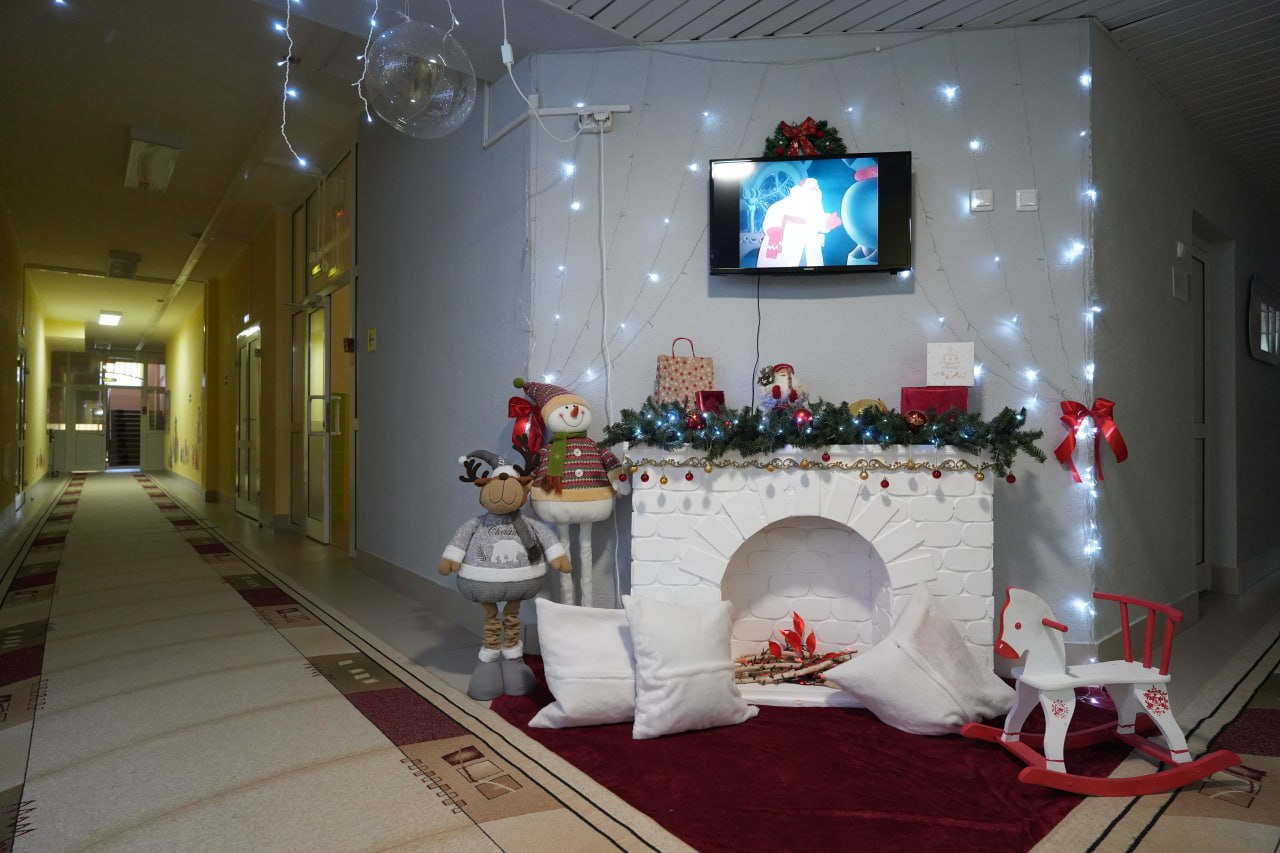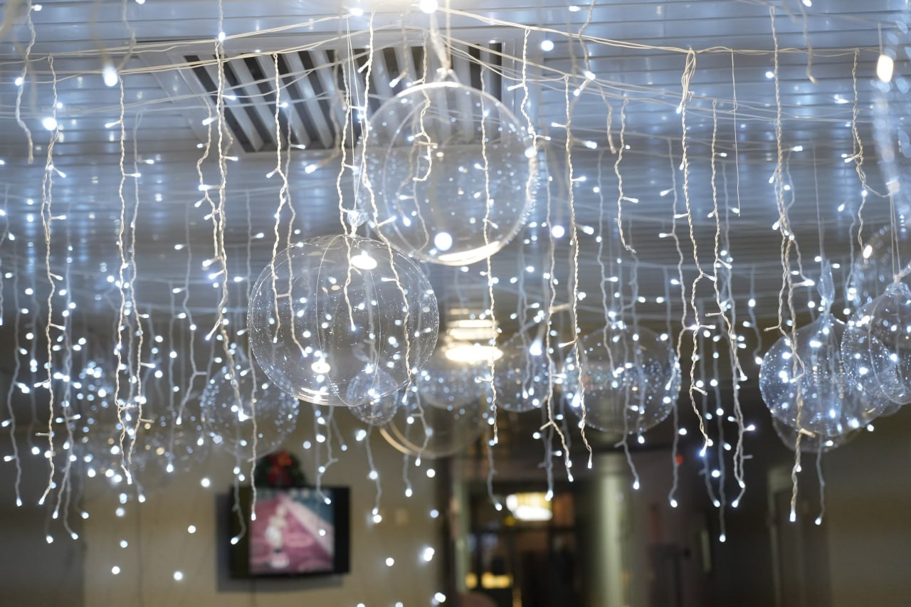 В детсаду №22 в праздничном убранстве холлы, залы и лестничные пролёты, сделаны фотозоны. Изюминкой стал большой воздушный шар. Новогодним оформлением занимались работники детского сада. Им помогали родители дошколят. В одной из локаций выставлены снеговики, изготовленные детьми и их родителями.