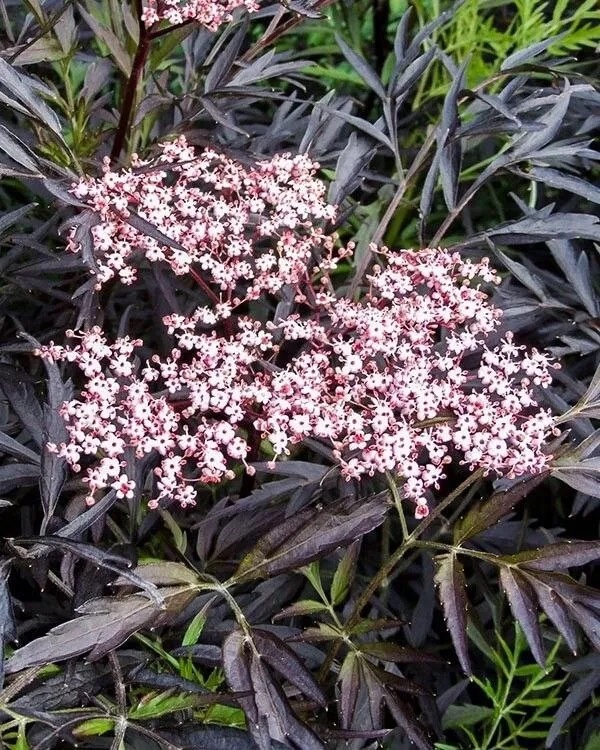 - Бузина черная (Sambucus nigra) - это не только декоративное растение, но и поставщик полезных ягод осенью. Быстро растет и легко поддаётся обрезке.