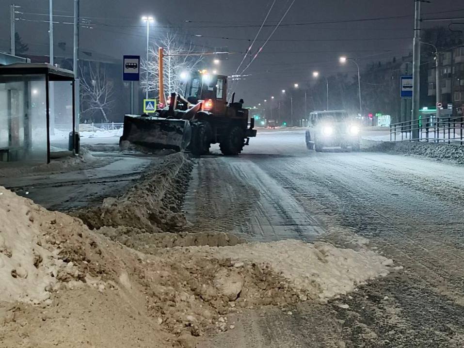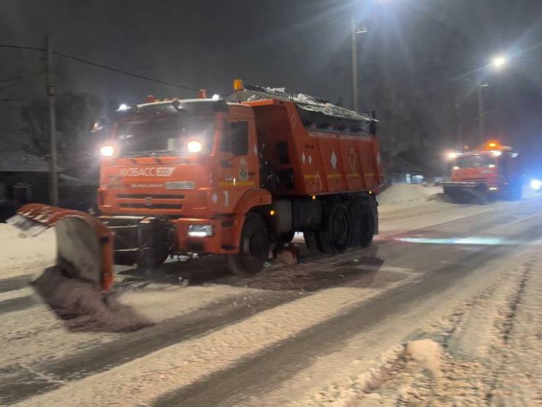 Кемеровские дорожные предприятия устраняют последствия снегопада
