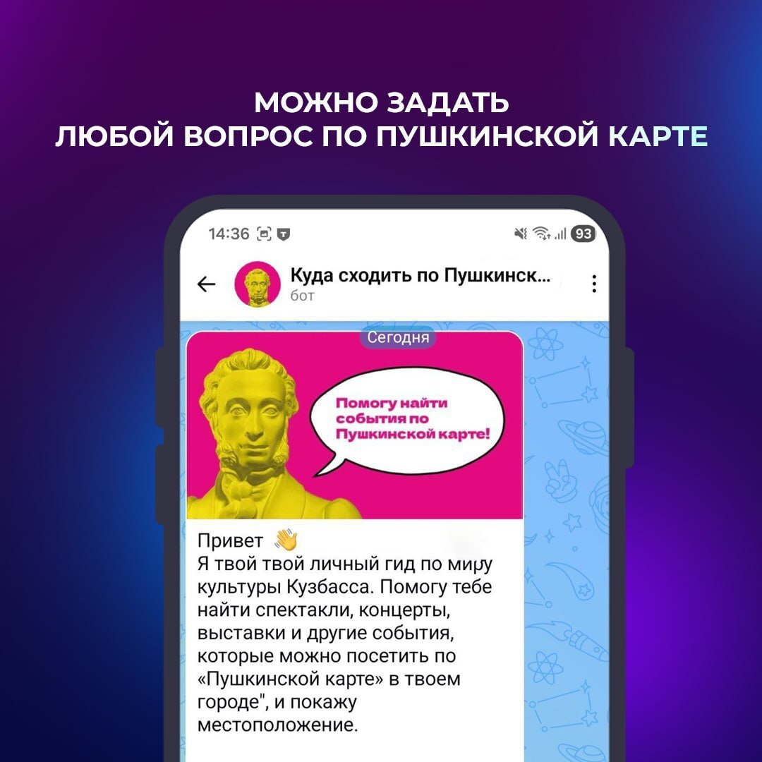 Чат-бот в приложении MAX интегрирован с платформой «Культура.РФ» и предлагает актуальные мероприятия: спектакли, выставки, экскурсии — прямо в мессенджере.