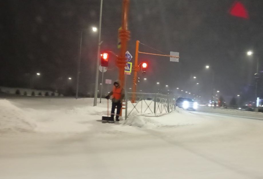 Очищают остановочные площадки, пешеходные переходы на улицах Соборная, Терешковой, проспектах Ленина, Химиков.