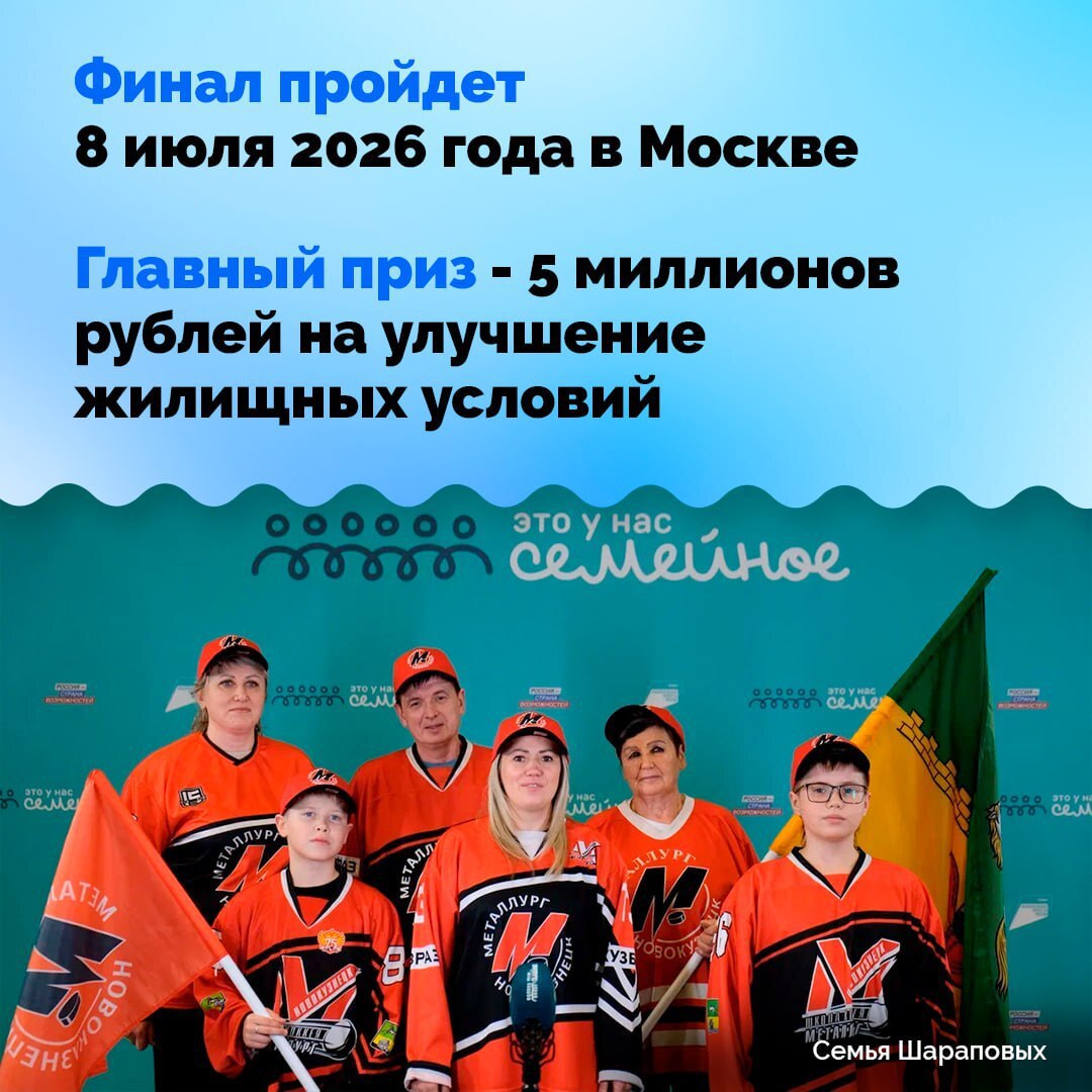 Семь семей стали победителями сибирского полуфинала и вышли в финал, который пройдёт в Москве 8 июля 2026 года. Это лучший результат в СФО — наши земляки опередили команды из Новосибирской, Омской, Иркутской областей и других регионов!