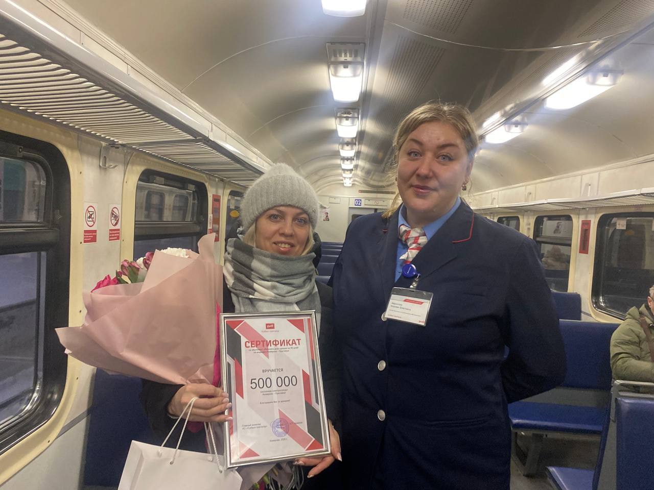 Компания «Кузбасс-пригород» поздравила Инну, а также вручила месячный абонемент на безлимитный проезд в электропоезде, букет цветов и памятный сувенир
