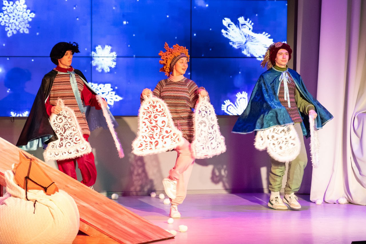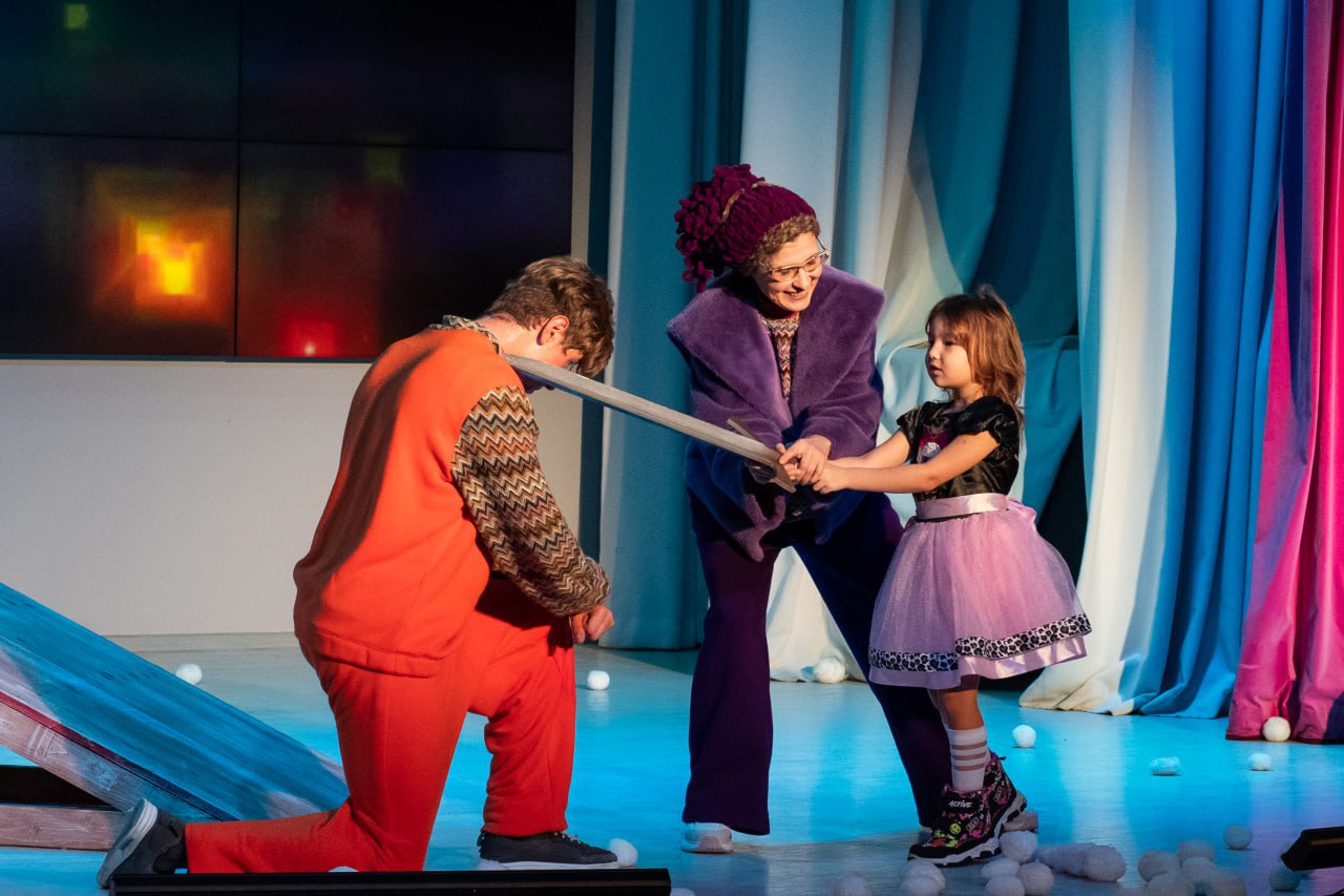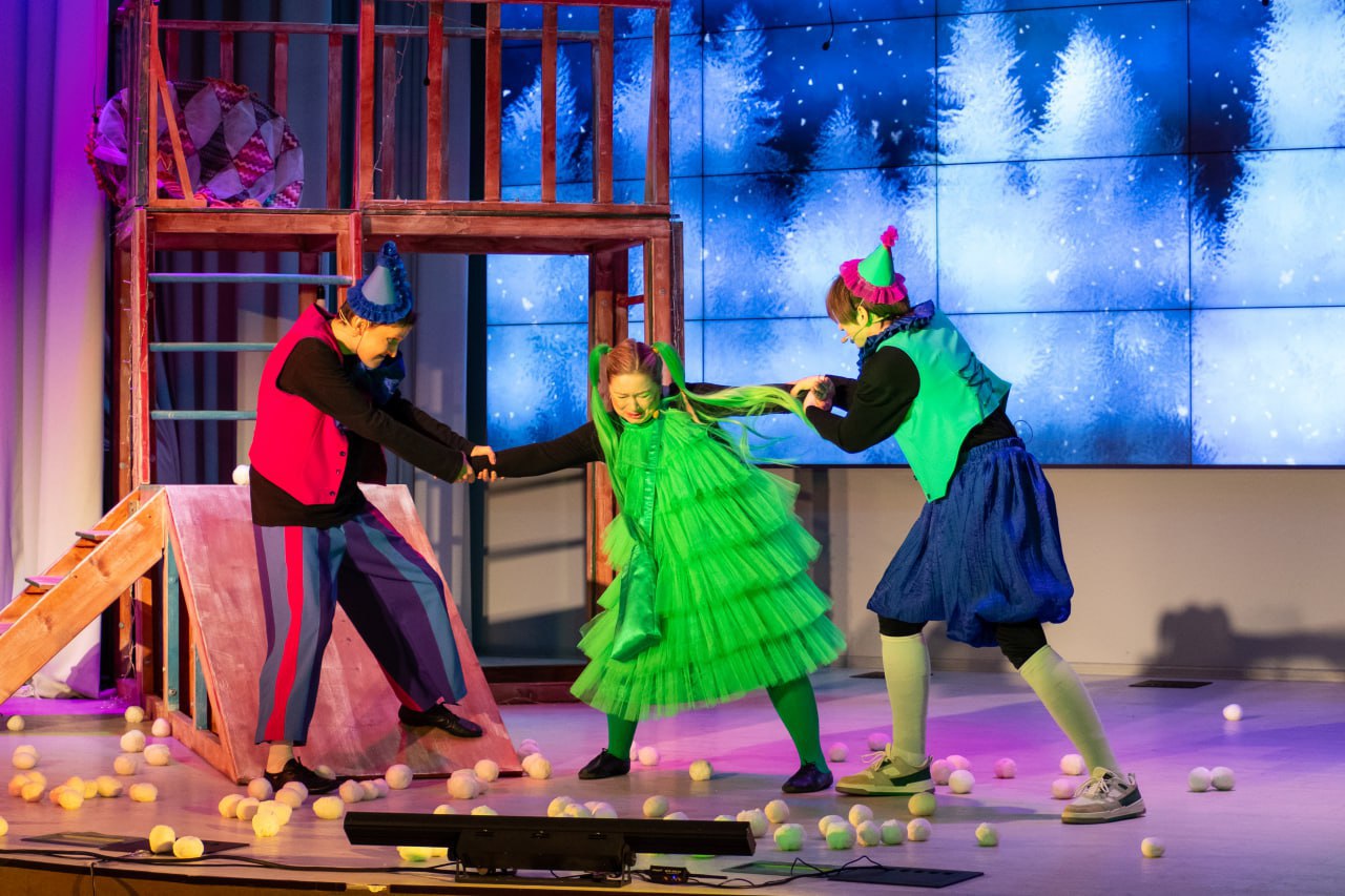 Постановку обрамляет новогодняя игровая программа с забавными заданиями, танцами. Её проведут Дед Мороз, Снегурочка и их сказочные помощники.