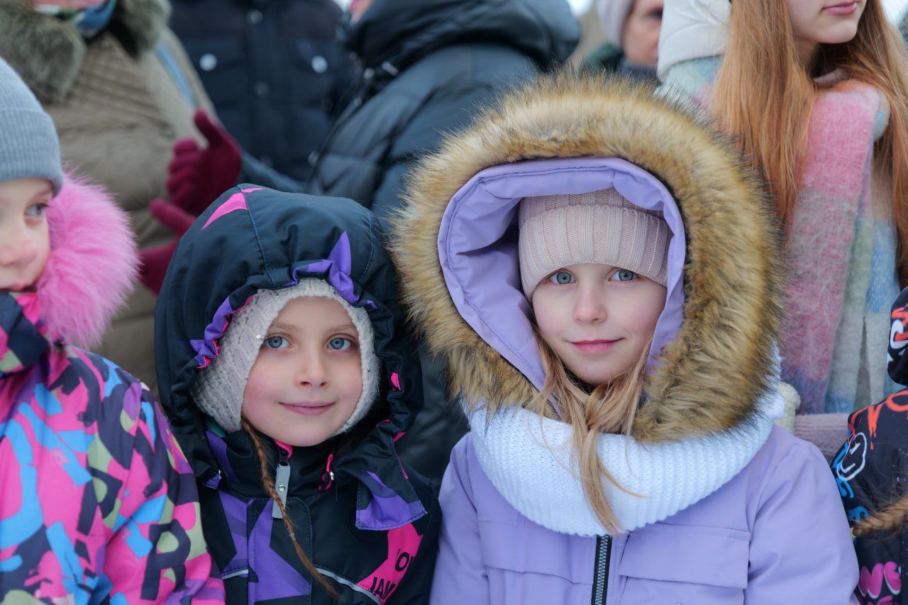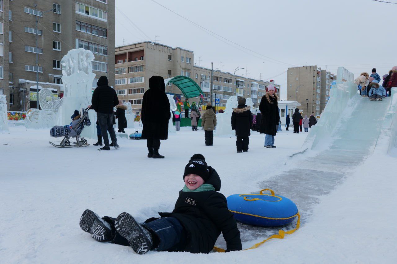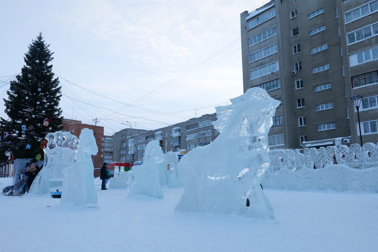 Ребятишек впечатлила большая ледяная горка, загадочный лабиринт и эффектная фотозона в виде прозрачного трона. Но главными героями праздника стали три коня - тоже сверкающие, ледяные, созданные талантливыми скульпторами.