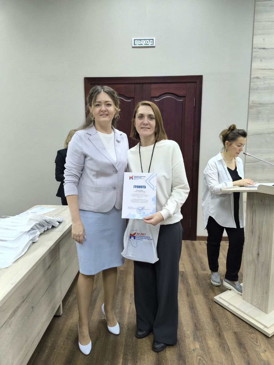 Ответное слово взяла Зоя Ануфриева, заместитель директора по воспитательной работе Центра дополнительного образования детей им. Веры Волошиной. Она не только сказала слова благодарности коллективу Избирательной комиссии Кузбасса, но и вручила благодарственные письма от начальника управления образования администрации Кемерово.