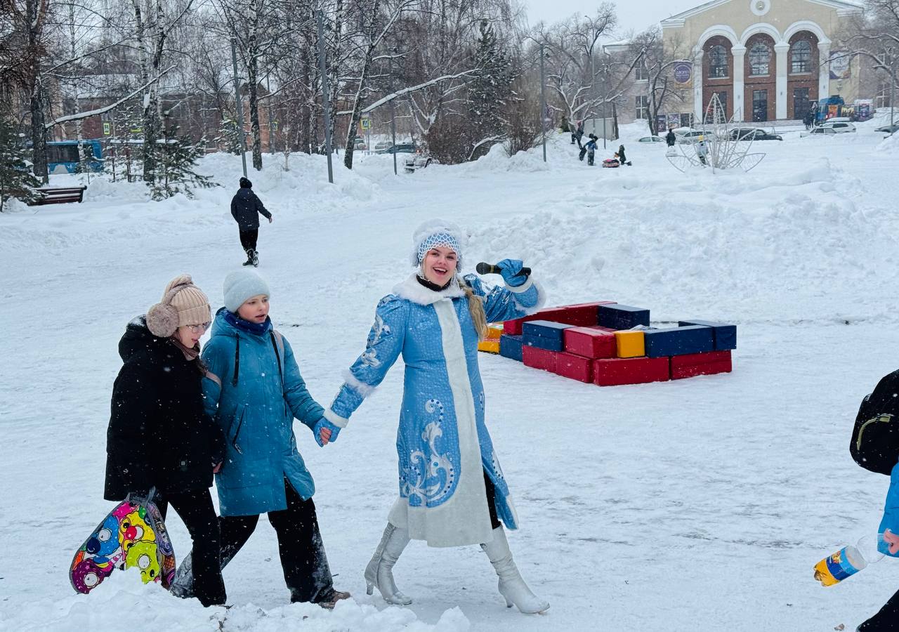 Новогоднюю локацию в Сквере Искусств открыли конкурсами, хороводом, награждением. С малышами и взрослыми веселились сказочные персонажи.