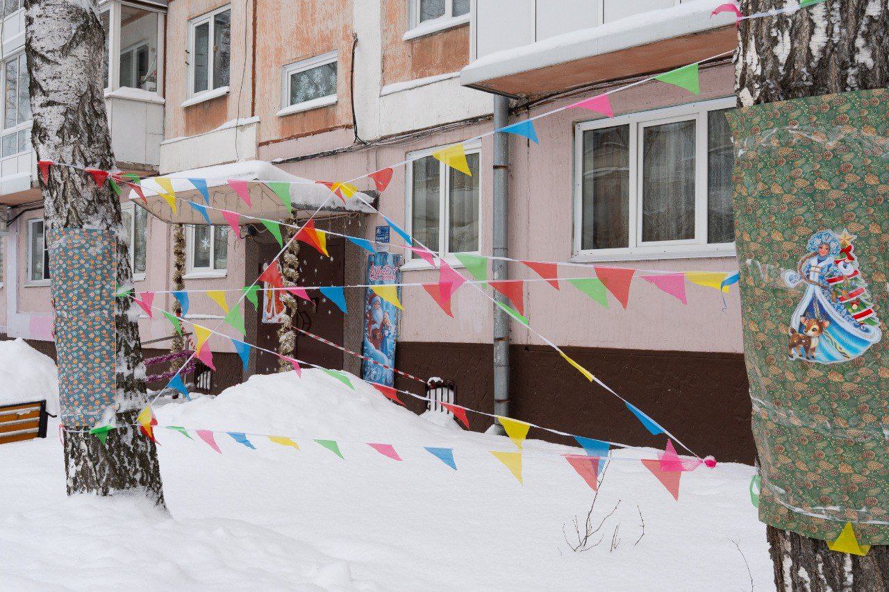 В середине декабря во дворе по проспекту Ленина, 82В появился снежный городок. Его создали активные жители двора вместе с учащимися городского классического лицея. Так они решили принять участие в городском смотре-конкурсе «Снежный калейдоскоп» в номинации «Сказки зимнего двора».