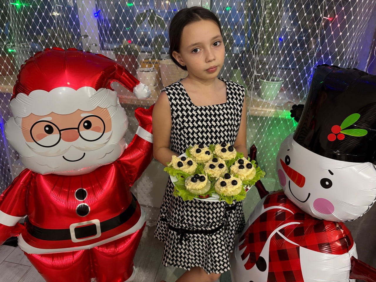 Виктория Дёмина, 5 класс школы №92 (блюдо десерт снеговики)