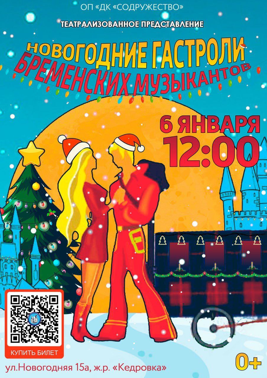 ДК «Содружество» на этот раз подготовил для юных зрителей «Новогодние гастроли Бременских музыкантов». Захватывающий сюжет, уникальные костюмы, яркие спецэффекты, любимые песни и добрая музыка Геннадия Гладкова – представление уже оценили учащиеся начальных классов.