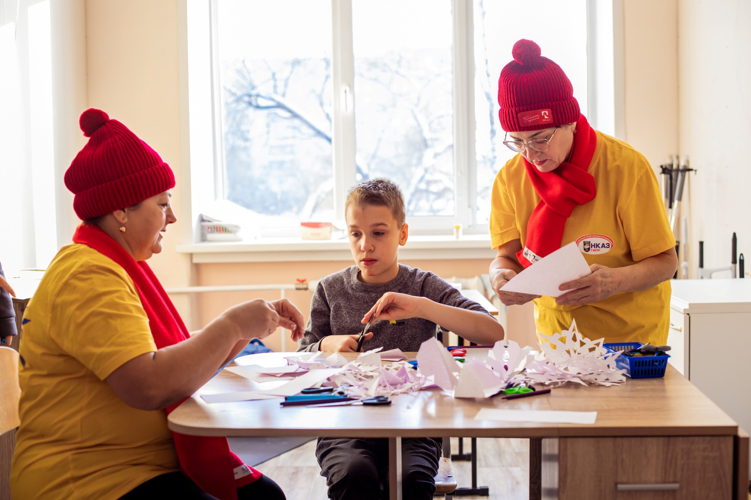 Так, волонтеры новокузнецкой промплощадки играли в настольные игры и мастерили новогодние сувениры с ребятами из школы-интерната №88, проводили мастер-классы и новогодние квесты для учеников из специальной школы №53, сделали мелкий ремонт в кухонной зоне ресурсного класса школы №103 и научили воспитанников этого класса, ребят с аутизмом, вырезать снежинки и разукрашивать елочные шары, построили горку для малышей из инклюзивного центра «Ромашка» и провели для них новогодний утренник с настоящими Дедом Морозом и Снегурочкой.