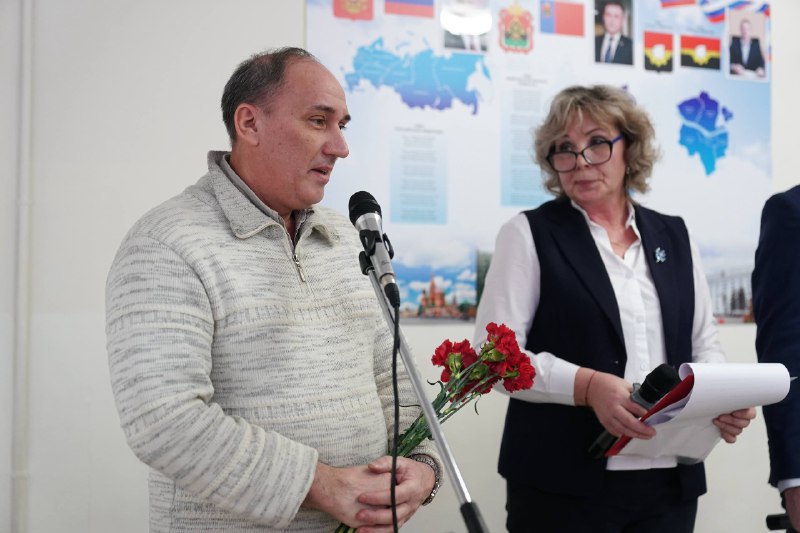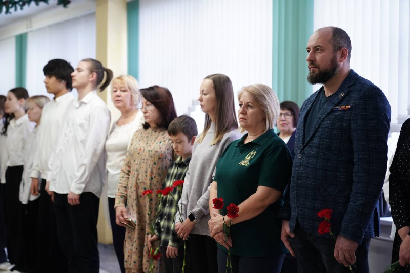 На открытии присутствовали почетные гости: родители бойцов, жена и сын Дениса Бромата, ветераны СВО, представители управления образования администрации города и районного Комитета семей воинов Отечества.