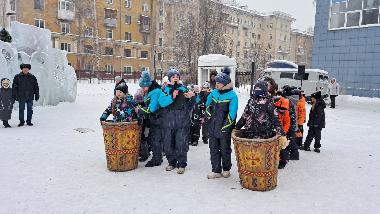 Во время торжества звучали новогодние песни. Для детворы были организованы подвижные игры и конкурсы.