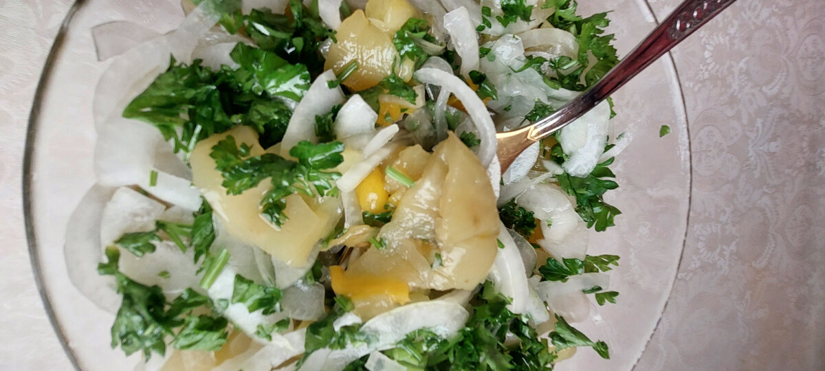 Через час ваш салат-закуска будет готов. Это блюдо прекрасно сочетается с шашлыками, мясом и рыбой. В дополнение к свежему хлебу, оно станет аппетитным акцентом вашего стола. Попробуйте и насладитесь уникальным вкусом!