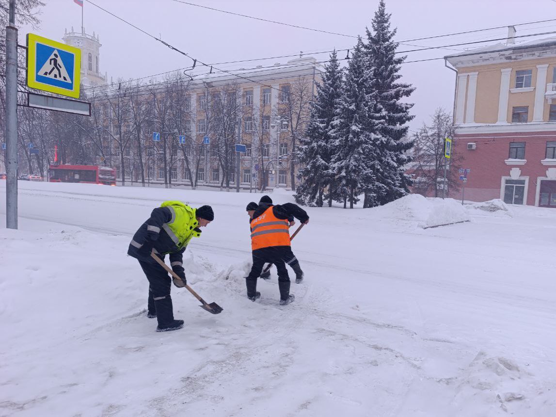 По прогнозам синоптиков, снегопад продолжится в течение дня. Дорожные службы работают в круглосуточном режиме. Для уборки города от снега, наледи и накатов на дорогах задействованы автогрейдеры, самосвалы, тракторы, фронтальные погрузчики. Особое внимание - основным магистралям, связывающим районы; маршрутам общественного транспорта, мостам и путепроводам. С помощью спецтехники и в ручную рабочие прочищают тротуары, пешеходные переходы, остановки.