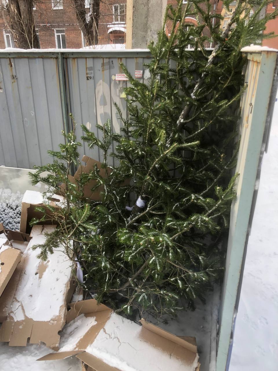 Первый сдался!. В Новокузнецке заметили выброшенную ёлку
