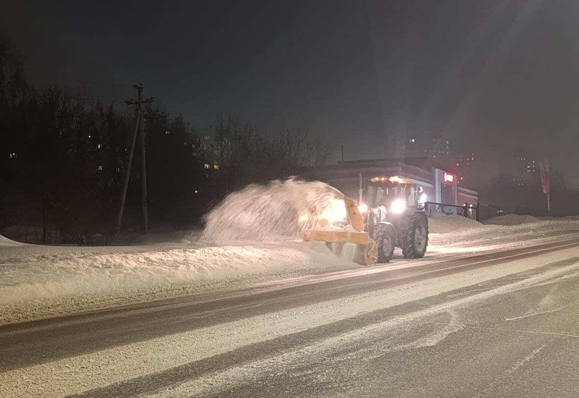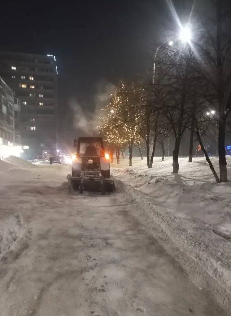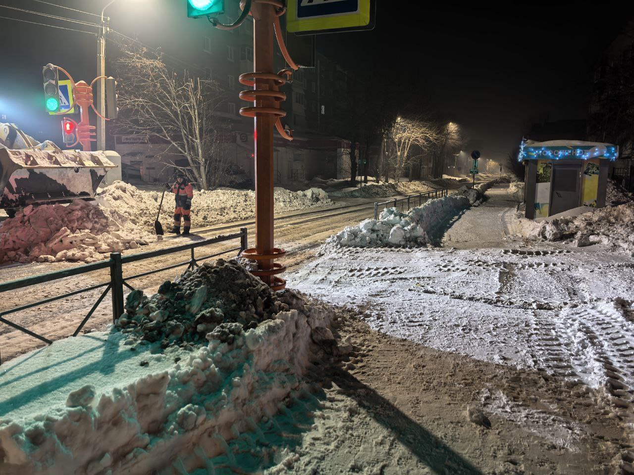Ночью техника работала на площади Советов, просп. Ленина от ул.Мичурина до ул.50 лет Октября, ул.Коломейцева, 2, ул.Космическая от ул.Базовой до ул.Ю.Двужильного, на Кузнецком мосту и мосту на пр.Ленина.