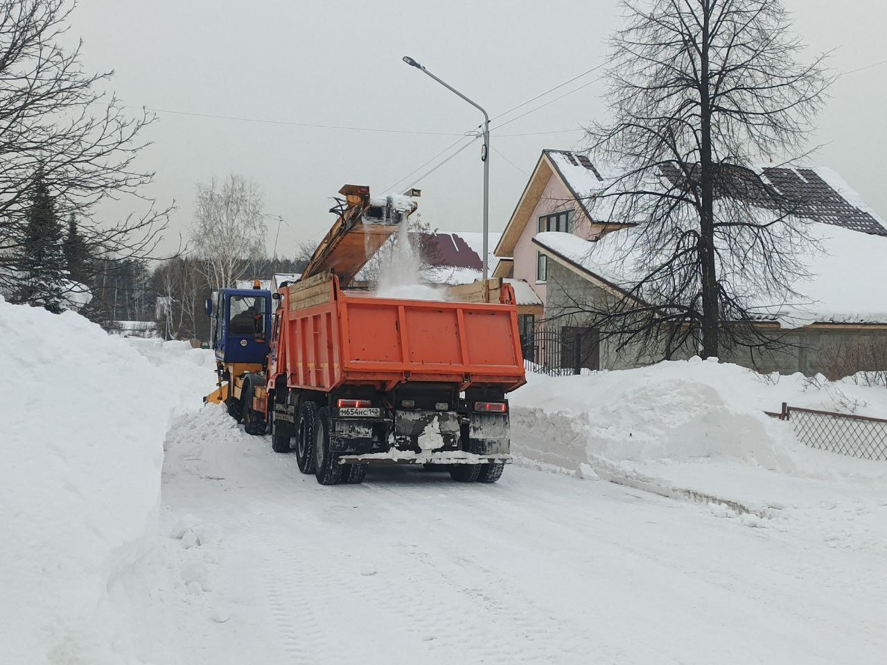 В жилом районе Кедровка, Промышлённовский расчистить улицы и дороги от снега помогают предприятия города