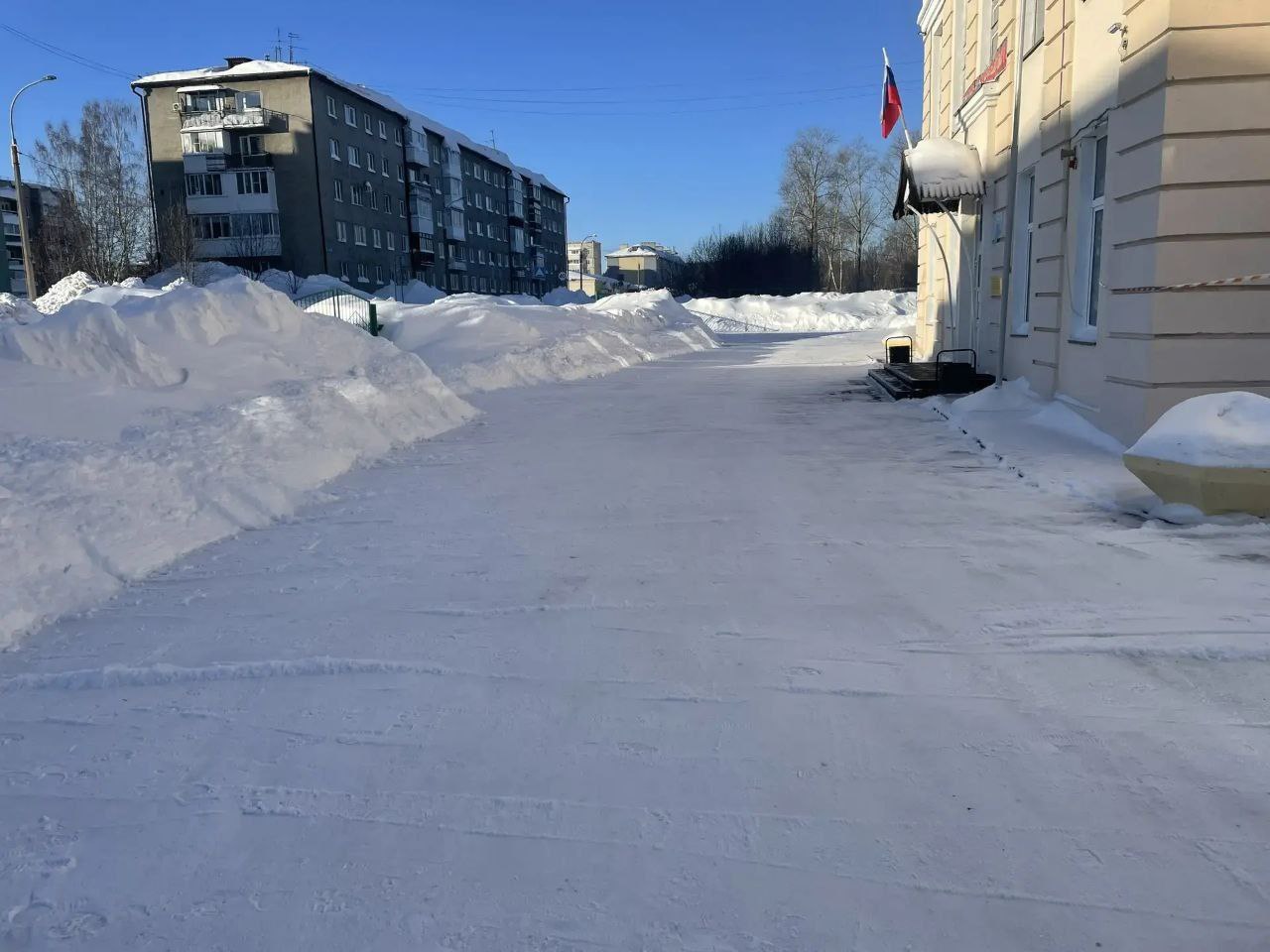Сегодня расчищали и снимали накат на улицах Российской деревни. Работу проводили совместными усилиями территориального управления, промышленными и коммерческими предприятиями города.