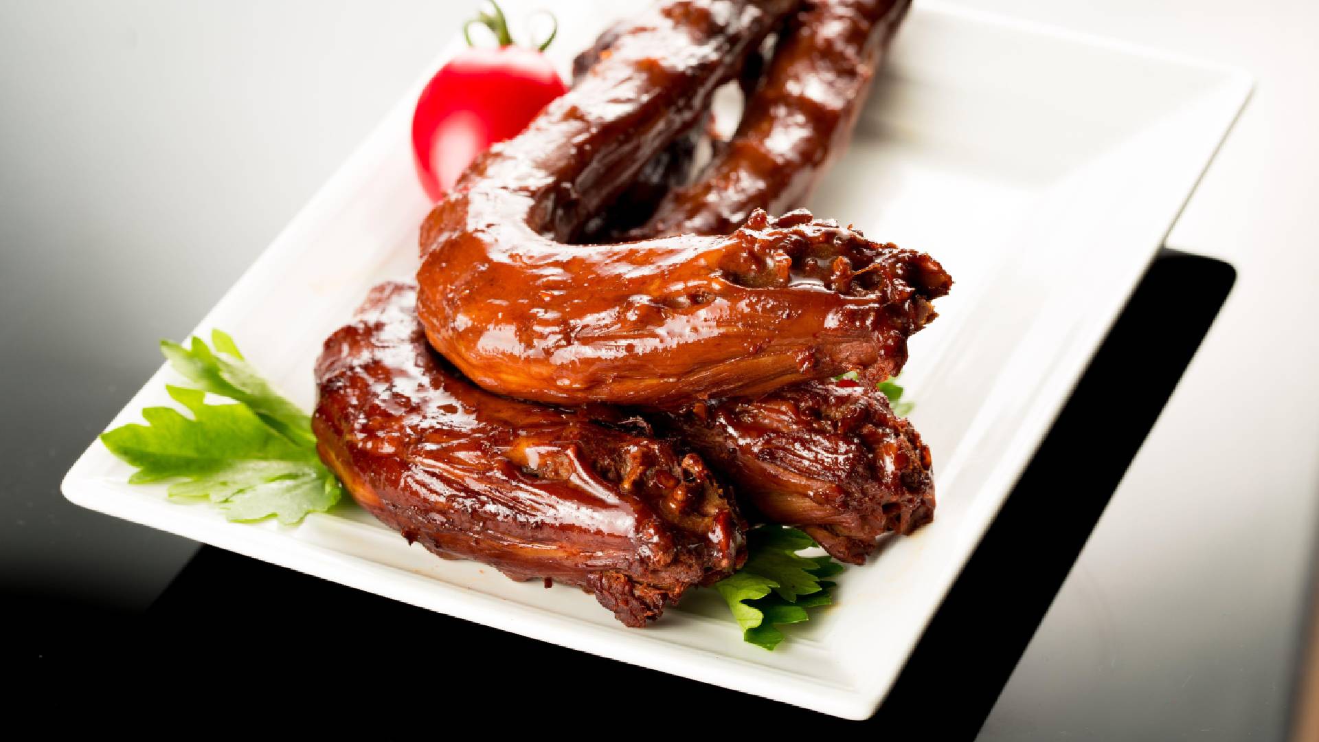 Промойте мясо под проточной водой и сложите в глубокую миску. Натрите корень имбиря на мелкой терке. Чеснок раздавите лезвием ножа и измельчите. Посыпьте куриные шеи приправами.