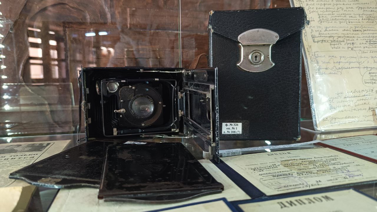 Также можно познакомиться с раритетными фотокамерами, которые собирал Сергей Черемнов, журналист, писатель, редактор, руководитель пресс-службы губернатора региона Амана Тулеева. Сергей Иванович – один из фондообразователей городского архива, он передал документы, издания, а также советские фотоаппараты, которые коллекционирует.