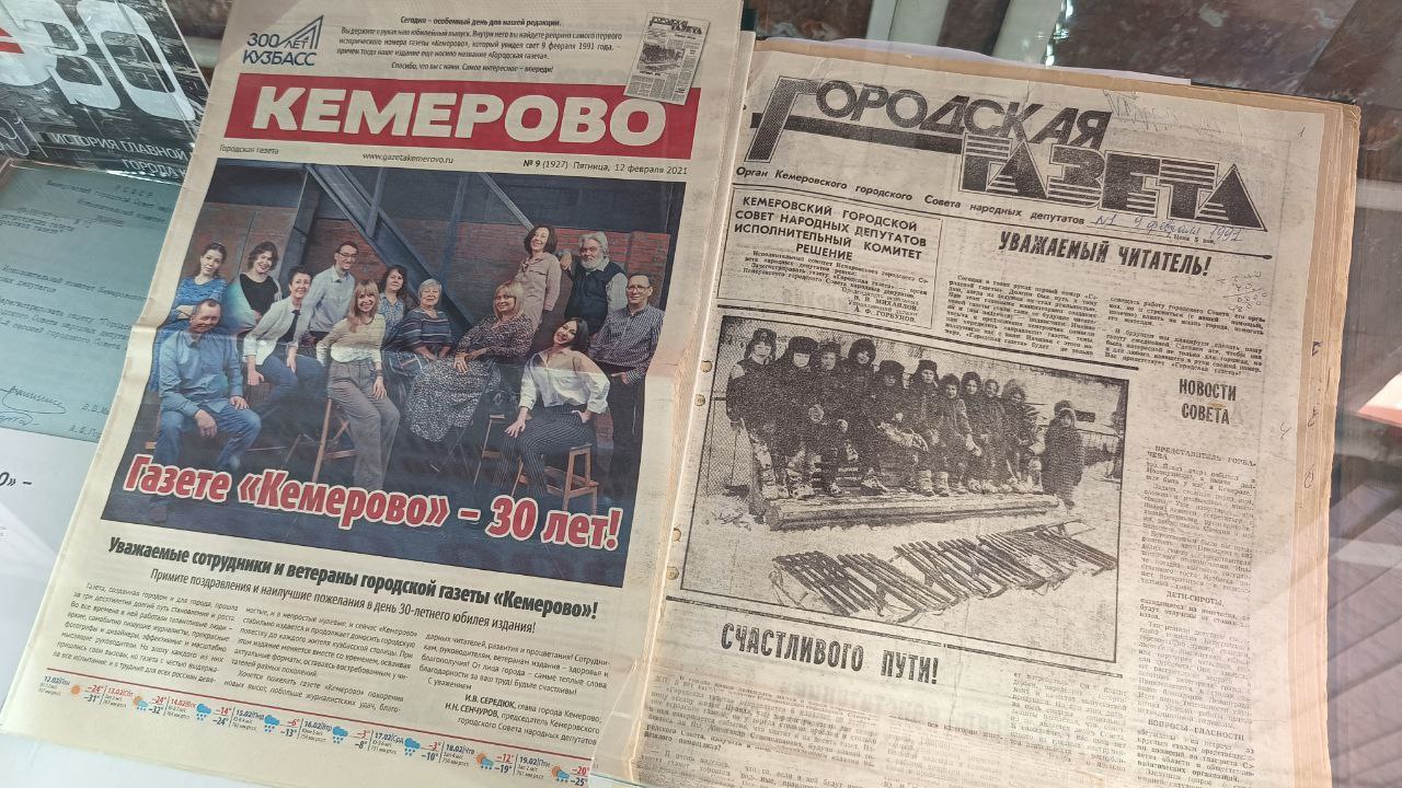 Сотрудники городского архива подобрали интересные предметы и документы. Отдельная экспозиция посвящена газете «Кемерово», которая в феврале отметит 35-летие. Представлены рукописи авторов, рабочие записи, первое издание городской газеты, фотографии редакторов прошлых лет, печатный станок.