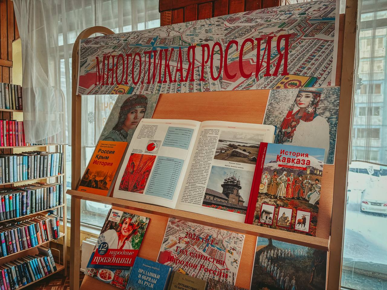 В честь Года единства народов России, о котором объявил Президент РФ Владимир Путин, библиотекари организовали выставку-диалог. Она носит название «Многоликая Россия».
