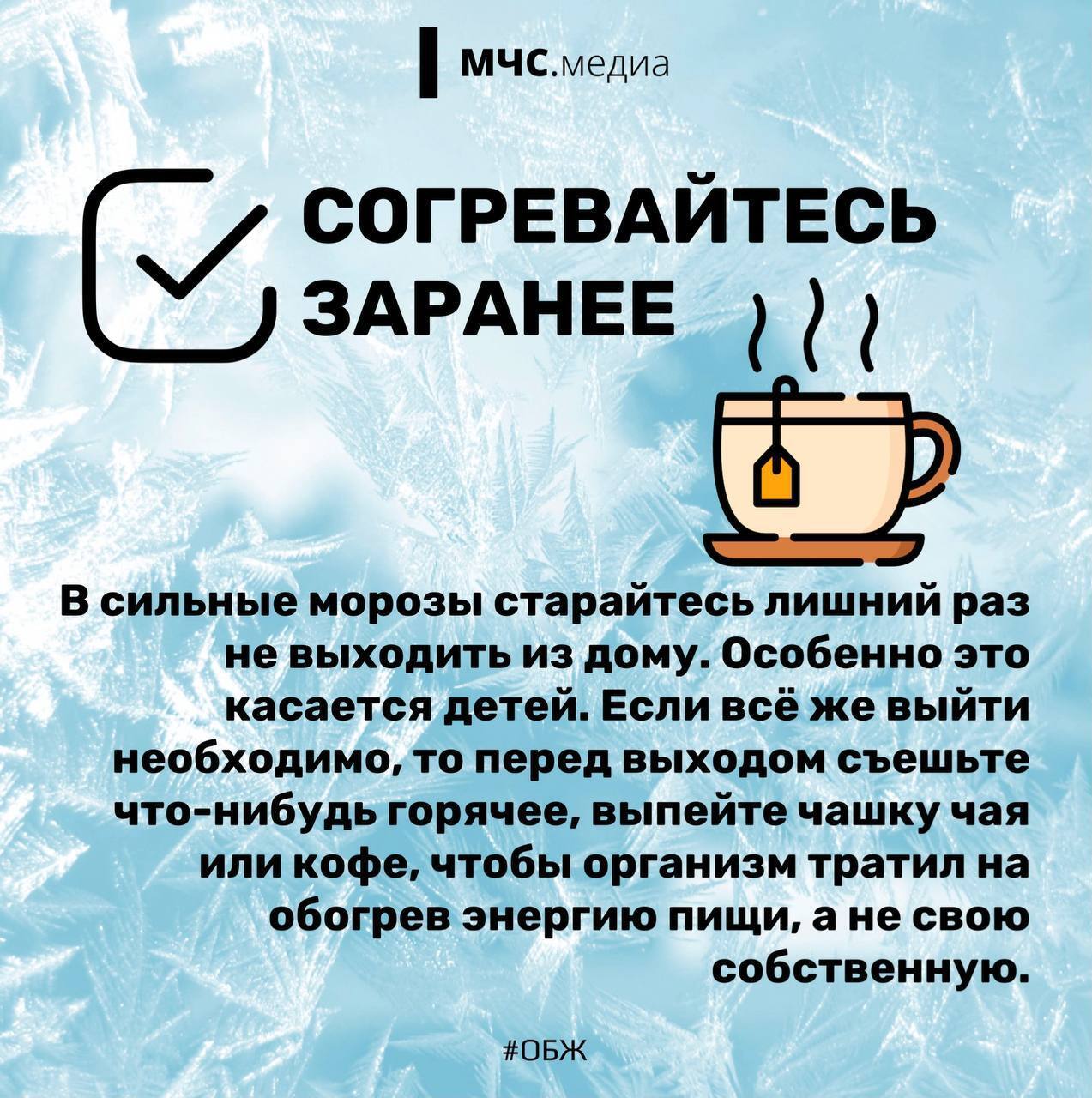 Ограничьте пребывание на улице, одевайтесь в несколько слоёв тёплой одежды, следите за состоянием отопительных систем и не оставляйте транспорт надолго без прогрева.
