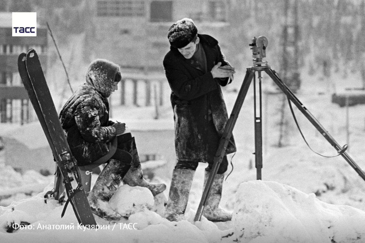 #архив_ТАСС_Сибирь. Студентка и техник во время разбивки площадки центральной обогатительной фабрики шахты «Распадская»