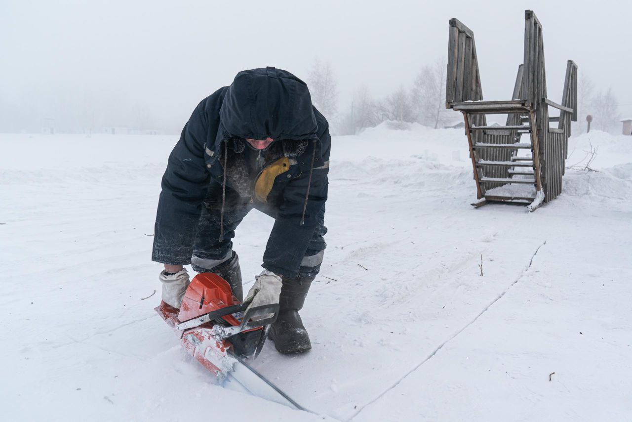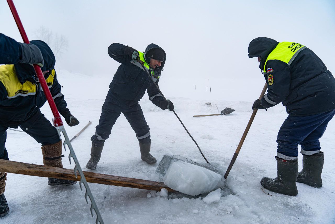 Специалисты Кемеровской службы спасения занимаются подготовкой крещенской купели на Красном озере