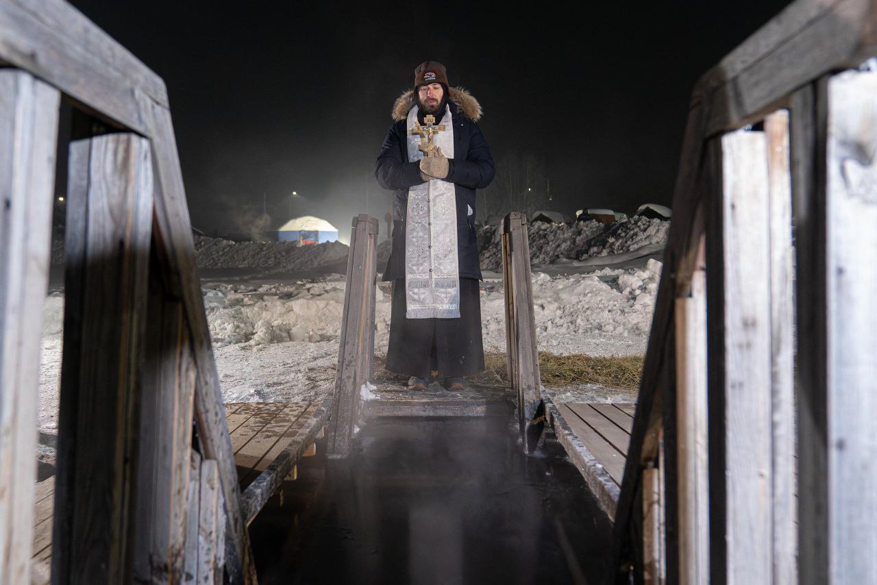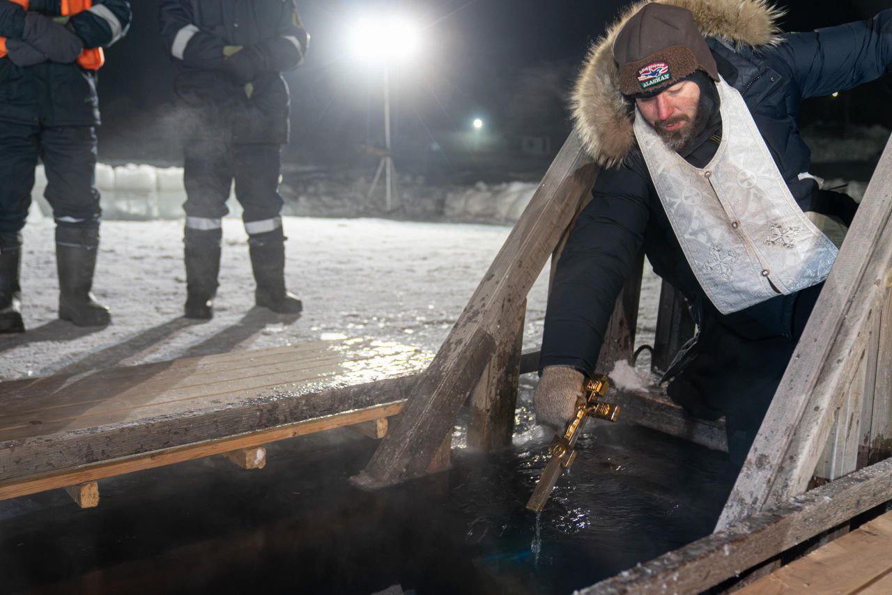 В 20:00 священнослужители Кемеровской епархии провели обряд освящения купелей. После этого все желающие могут окунуться в ледяную воду - до 20:00 завтрашнего дня.