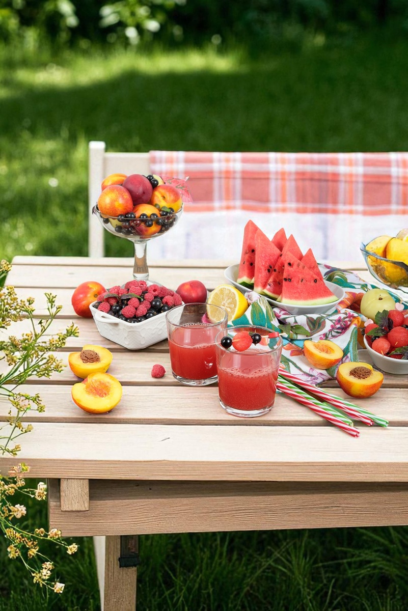 Для завершения оформите напиток: из оставшейся части арбуза вырежьте небольшие шарики с помощью специального инструмента и наколите их на шпажки, чередуя с ягодами. Этот шаг не только украсит ваш напиток, но и добавит интересный вкус.