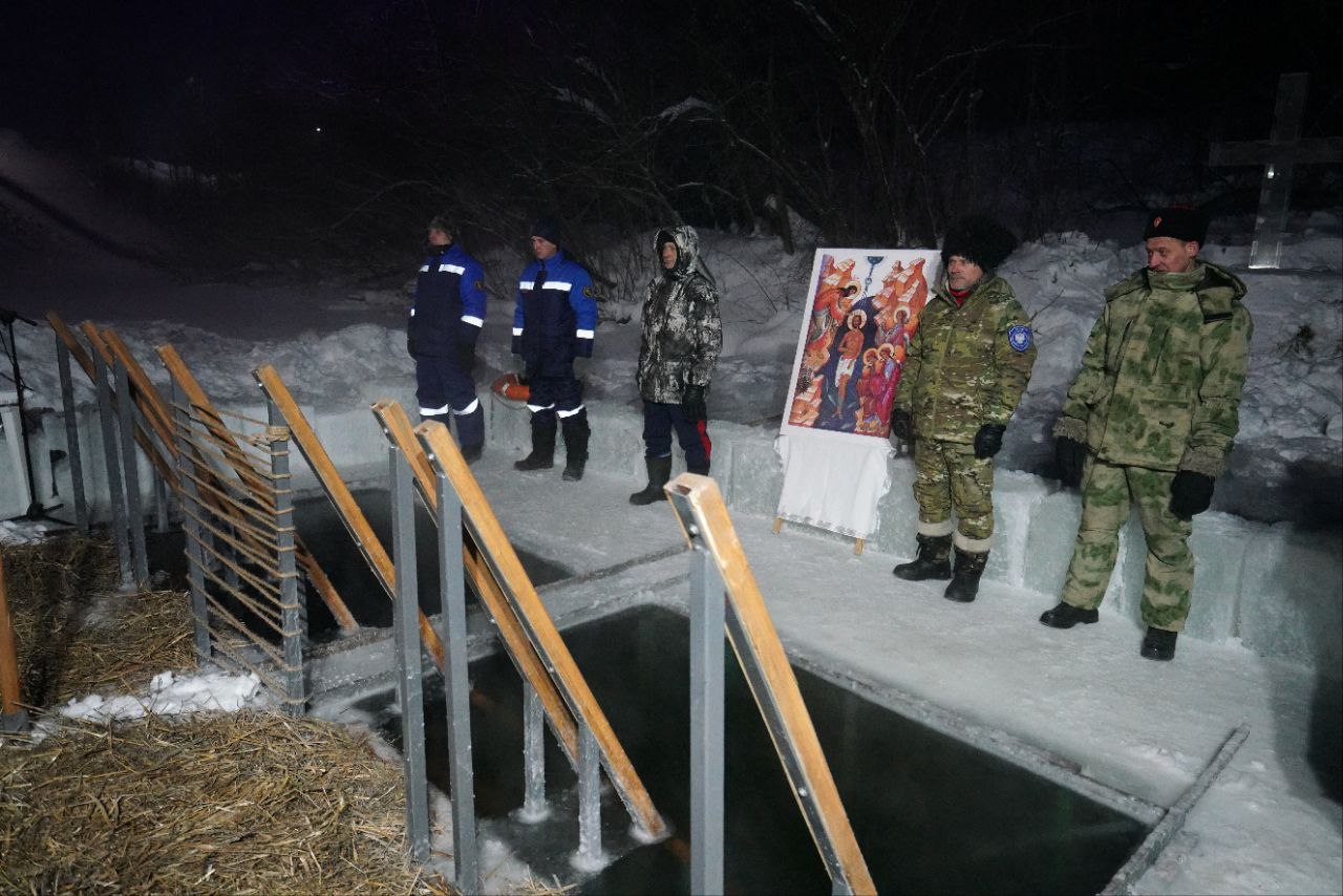 В храмах проходят праздничные богослужения: всего запланировано 287 дневных и 98 ночных служб. В муниципалитетах организованы купели для крещенских купаний.