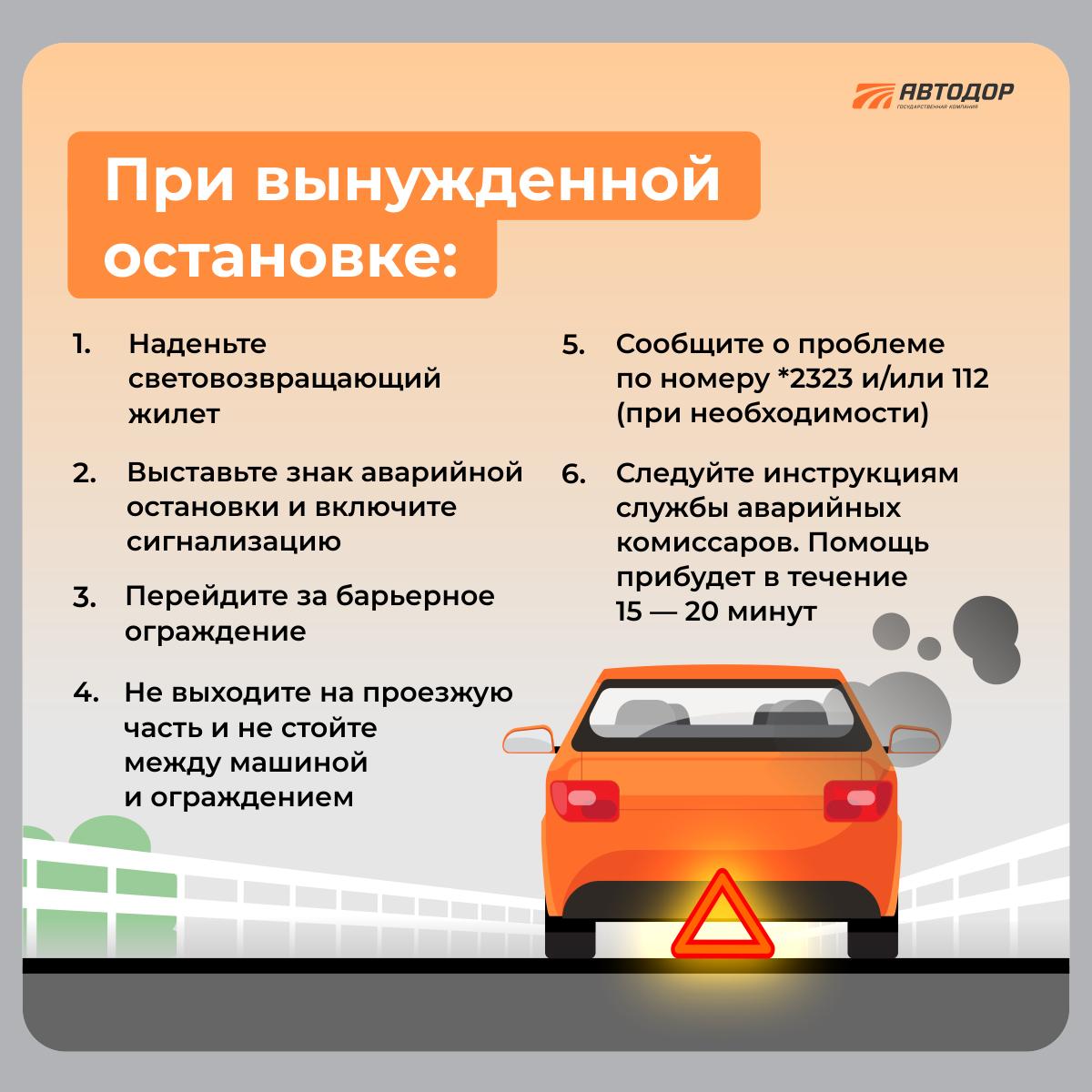Если в пути возникла нештатная ситуация, бесплатную помощь на трассах Автодора можно вызвать по номеру *2323.