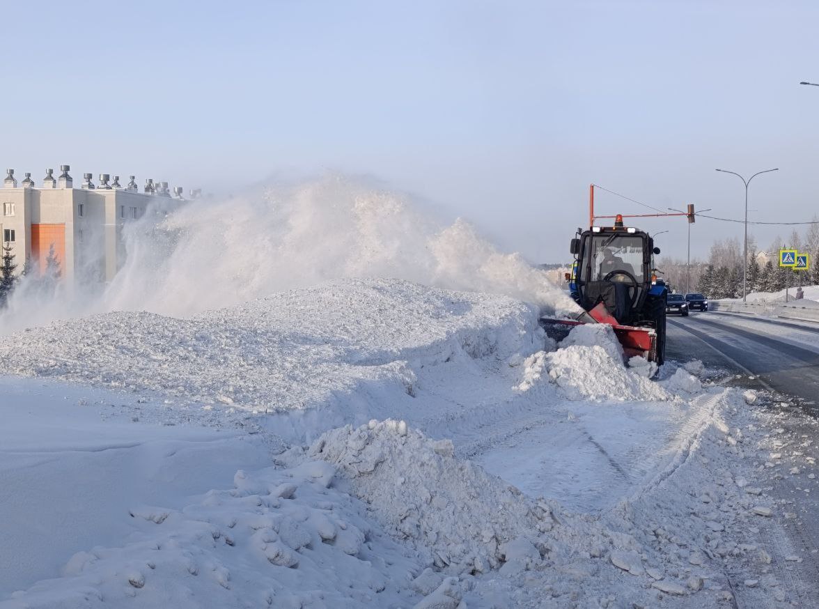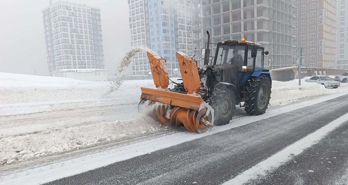 Основные работы - патрульная снегоочистка, обработка проезжей части противогололедными материалами, прометание тротуаров, перекид снега шнекоротором, вывоз снега. Мобильные бригады заняты на уборке от наледи пешеходных переходов и остановочных площадок.